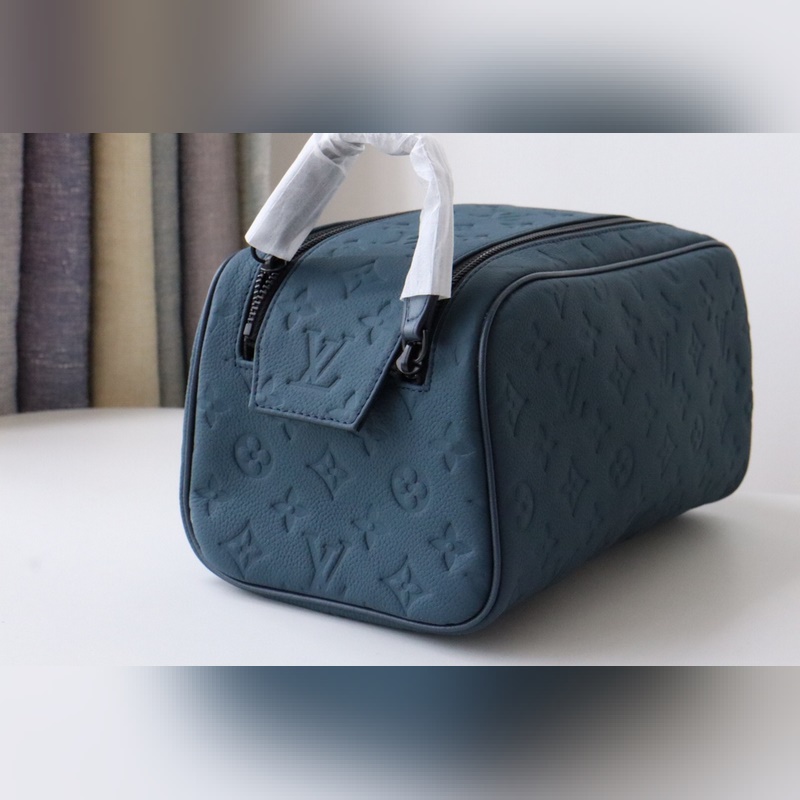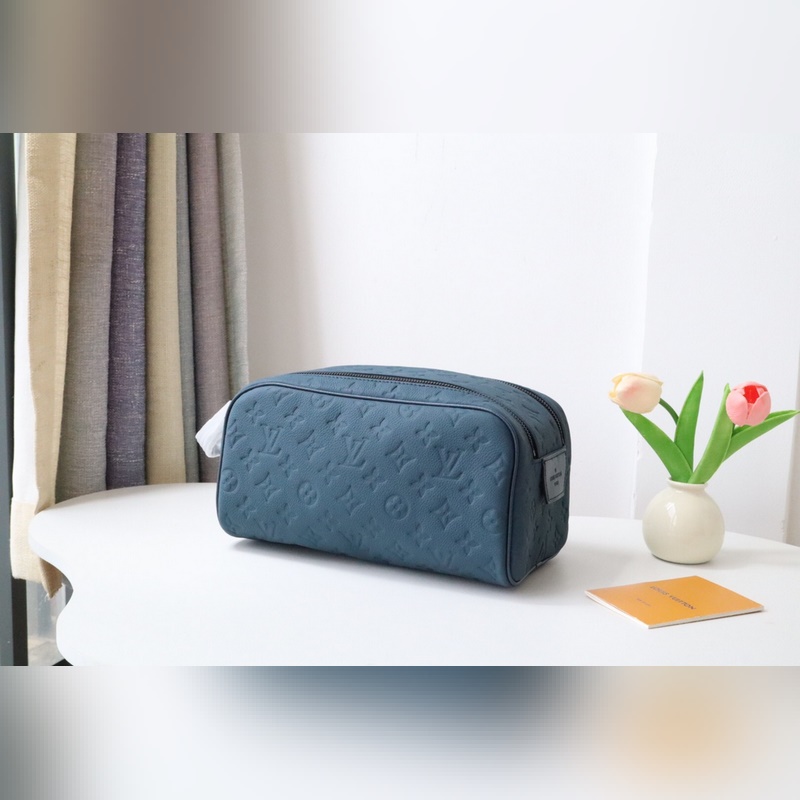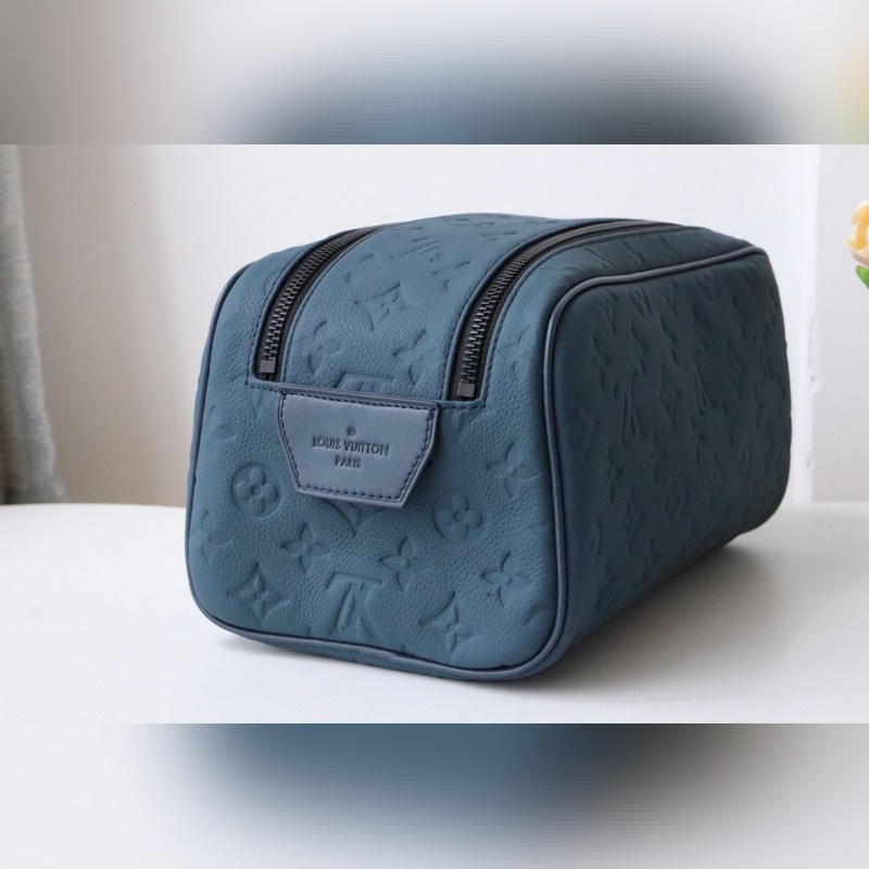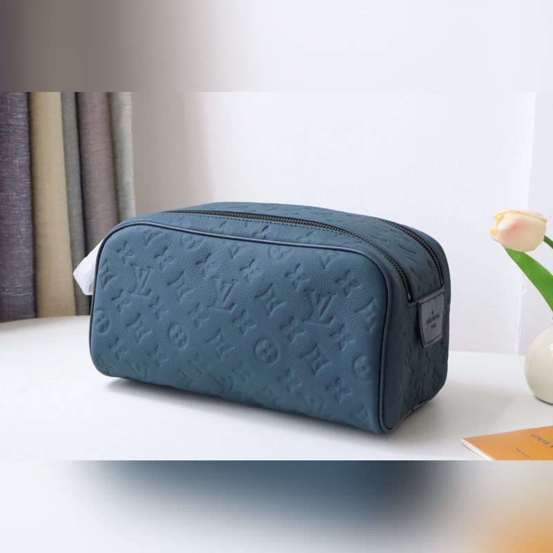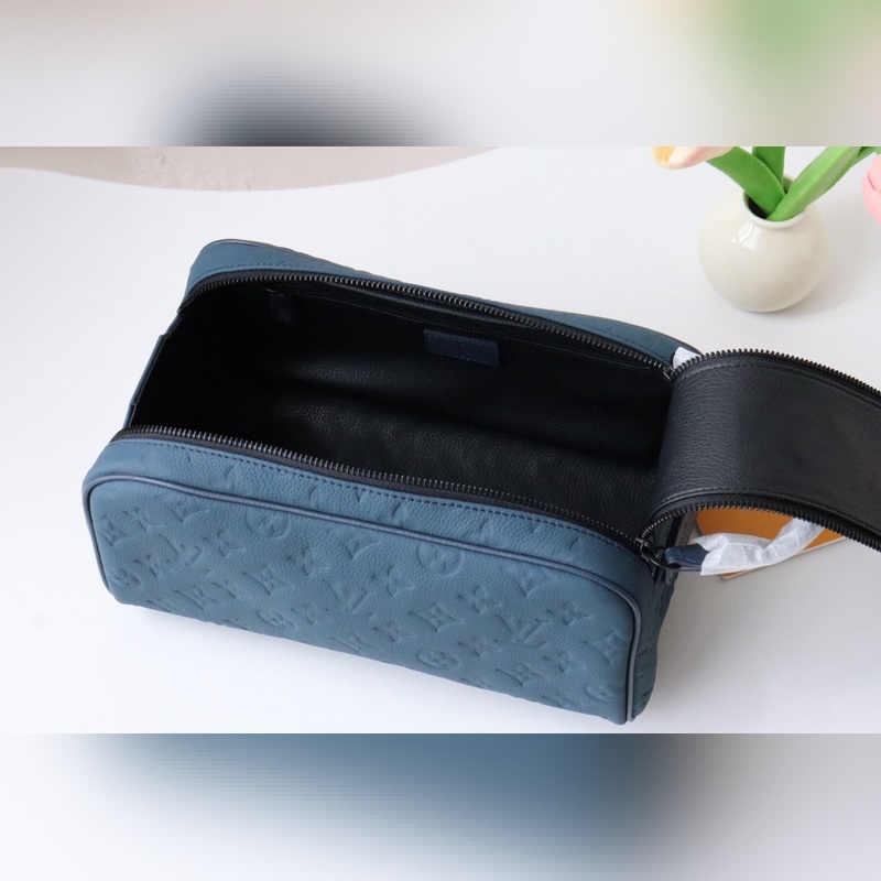 M11497 파란색 이 Dopp 키트 세면용품 가방은 세밀한 그레인 타우론 모노그램 가죽으로 만들어졌으며 세면용품과 기타 개인 물품을 운반하는 우아한 방법입니다. 가방은 넉넉한 공간 더블 지퍼 잠금장치 세탁 가능한 안감 등 세련되고 실용적입니다. 이 액세서리는 사려 깊은 선물이며 루이비통 여행 가방과도 완벽하게 어울립니다. 세부 정보 크기: 28 x 15 x 16.5cm
