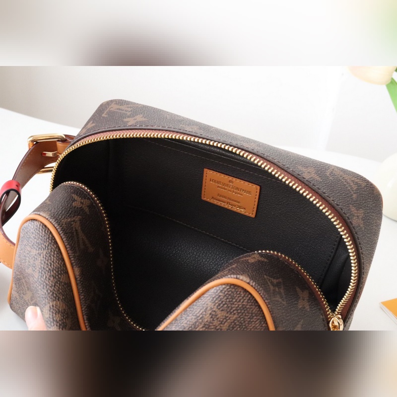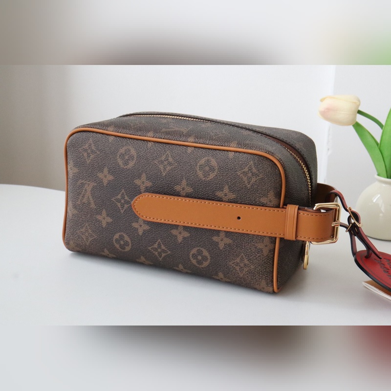 M11765 사물함 더플 키트 세면도구 가방 이 Locker Dopp 키트 세면용품 가방은 Pharrell Williams의 모노그램 더스트 캔버스로 브랜드의 클래식한 매력을 발산하며 페이드 모노그램 패턴 디스트레스드 소가죽 트림 핸들을 통해 시그니처 스타일이 표현됩니다. 탈착식 참은 마무리 터치이며 Marque L.Vuitton D?pos?e 로고가 새겨져 있습니다. 크기: 23 x 13 x 12cm