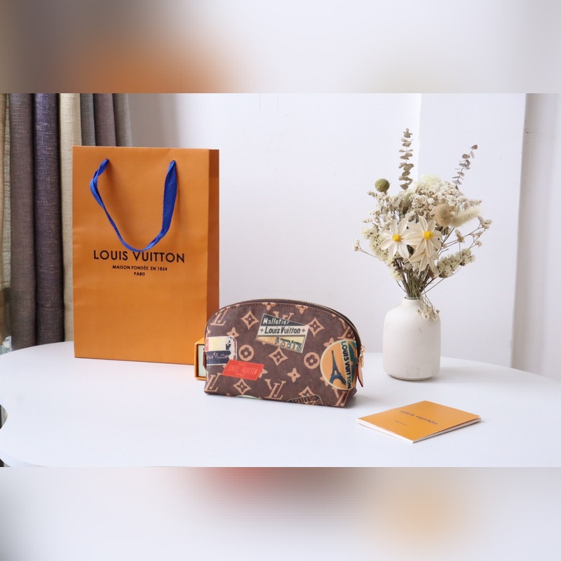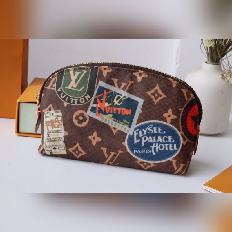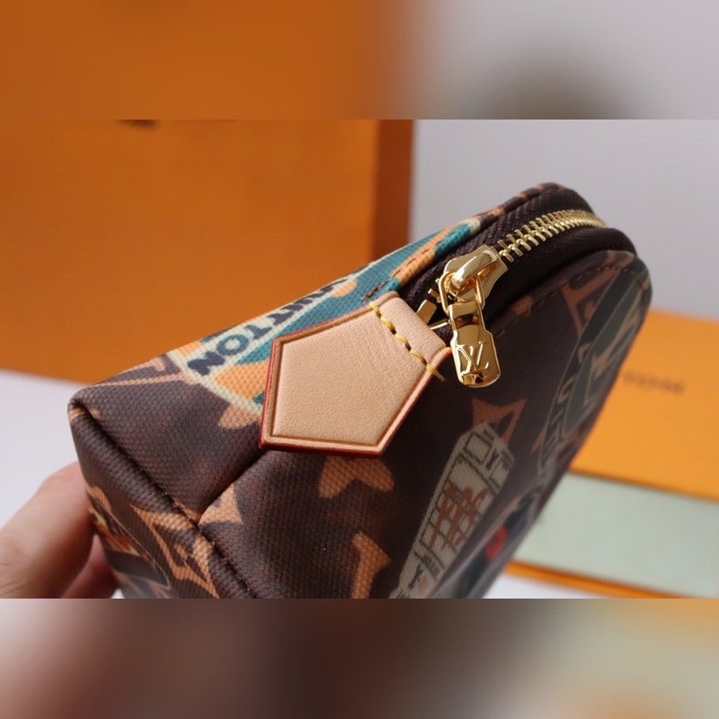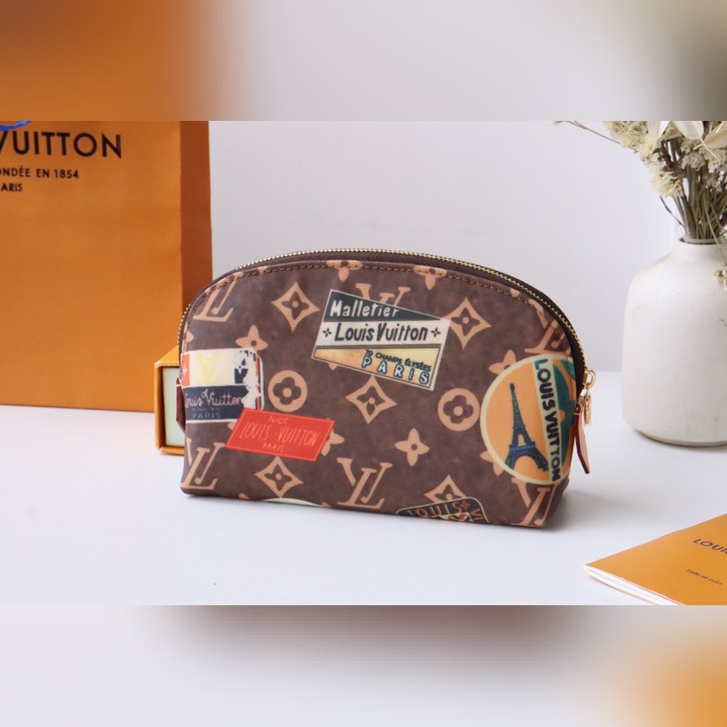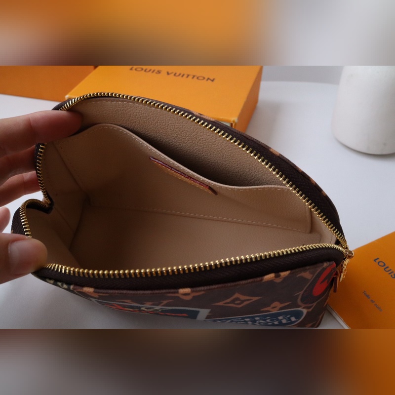 M47515 모노그램 이 컴팩트한 화장품 가방은 모노그램 캔버스로 만들어져 핸드백에 쉽게 보관할 수 있습니다. 둥근 모양과 평평한 바닥 덕분에 화장품에 쉽게 접근할 수 있습니다. 크기: 17*12*6