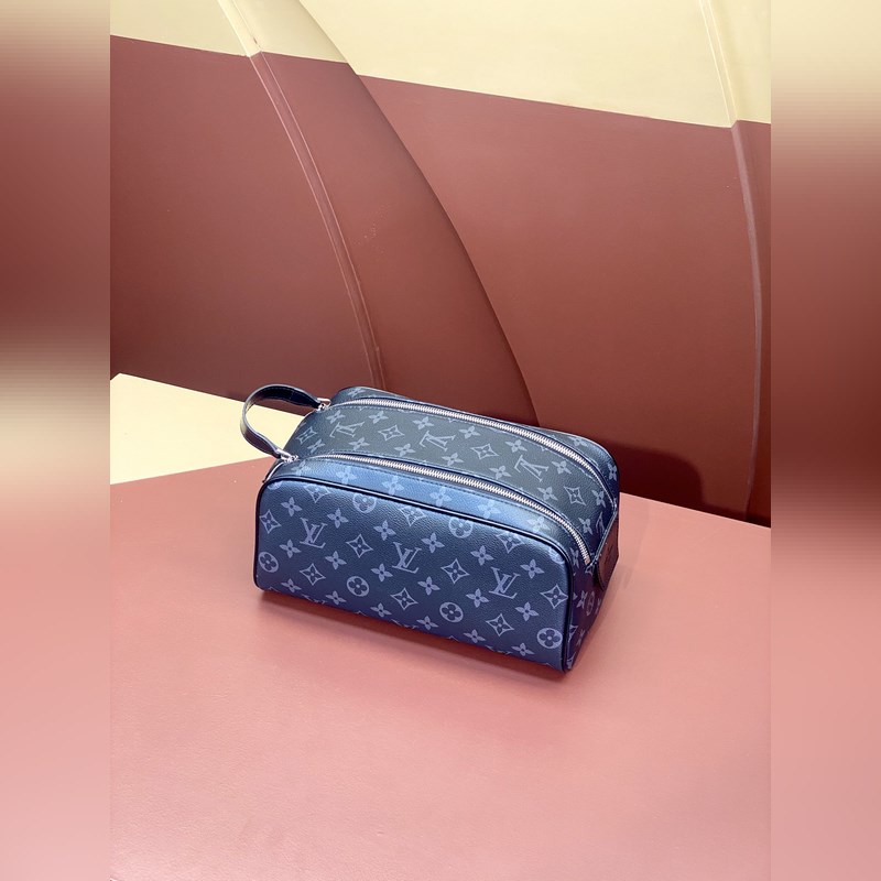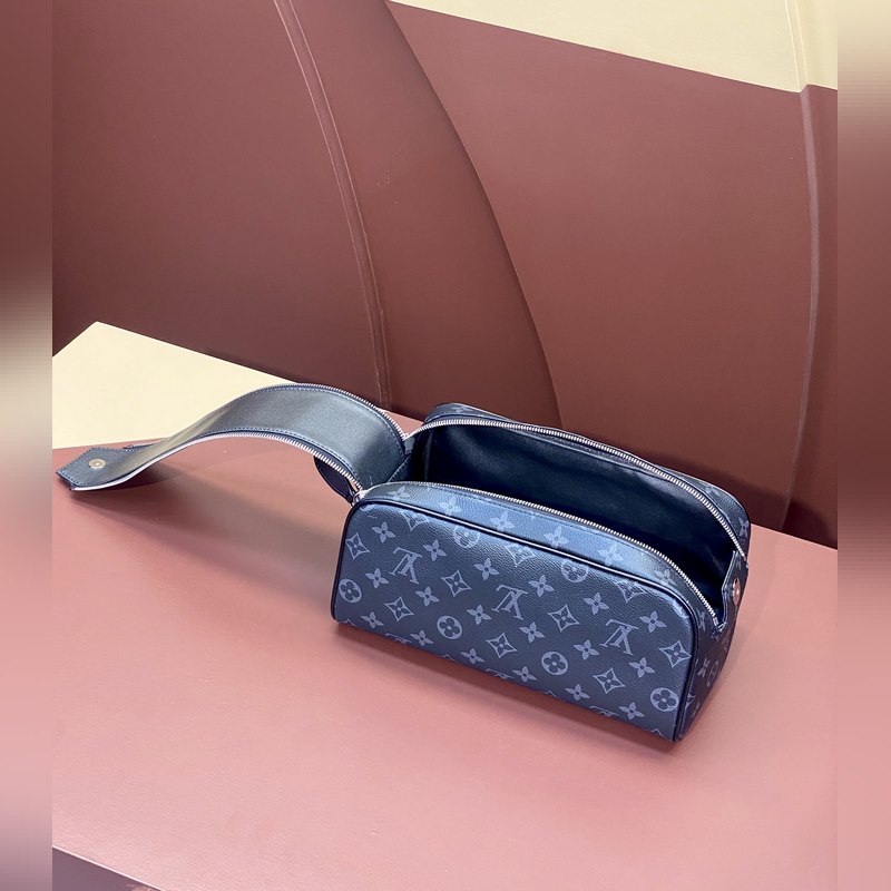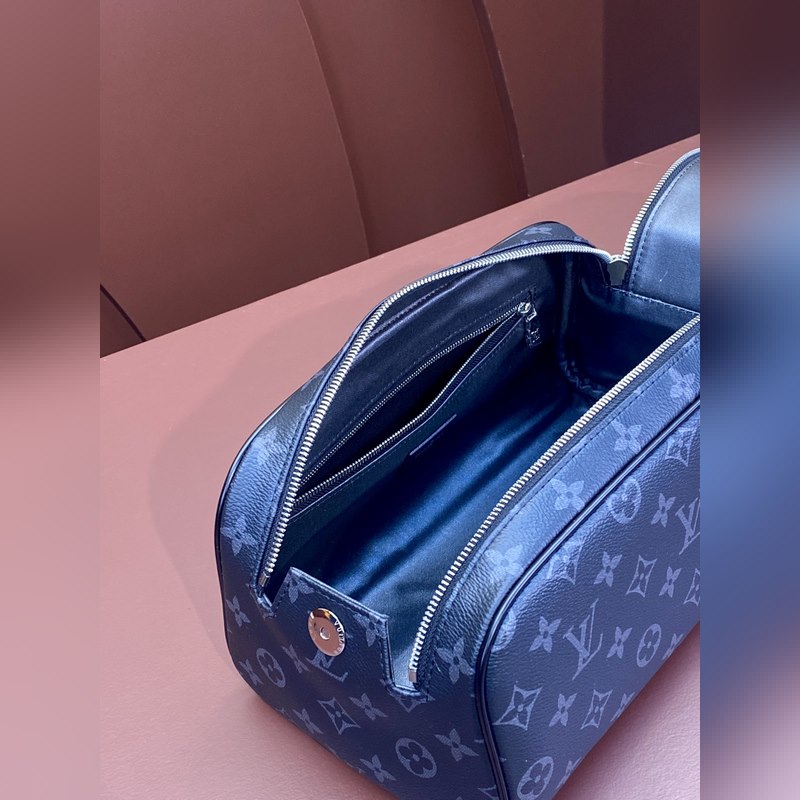 44494 블랙 플로럴 패턴(캔버스 가방) 넉넉한 크기의 이 세면용품 가방은 부드러운 촉감의 캔버스로 만들어졌습니다. 쉽게 접근할 수 있도록 큰 이중 지퍼가 달려 있습니다. 화장품을 모두 담을 수 있습니다. -다미에 캔버스 면 안감 -금색 금속 부속품 -가죽 스트랩이 달린 더블 지퍼 잠금장치 -내부 지퍼 패치 포켓 -크기 28x16x13cm.
