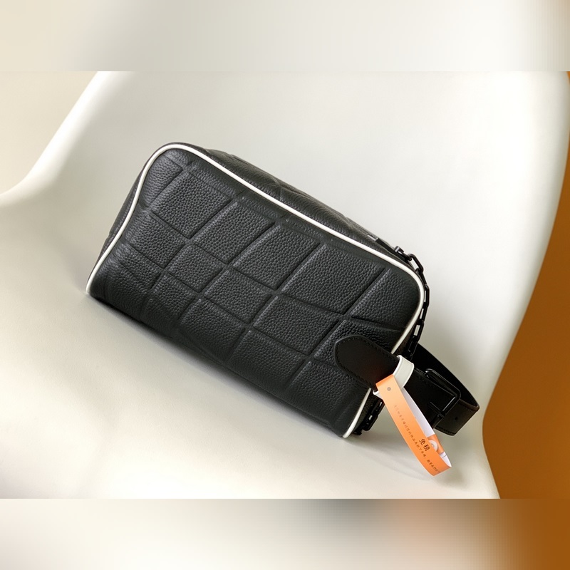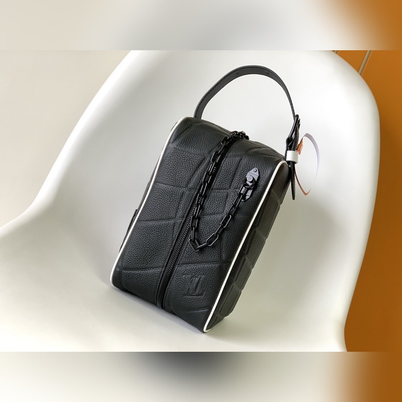 M81849.2024 월드컵 공동 브랜드 시리즈 이 Do Kit 세탁 가방은 타우리옹 가죽으로 만들어졌습니다. 양각 무늬는 골대를 맞히는 축구공을 연상시킵니다. 같은 색상의 LV 라벨은 조절 가능한 가죽 손잡이로 되어 있어 쉽게 운반할 수 있습니다. 크기: 15x24x15cm