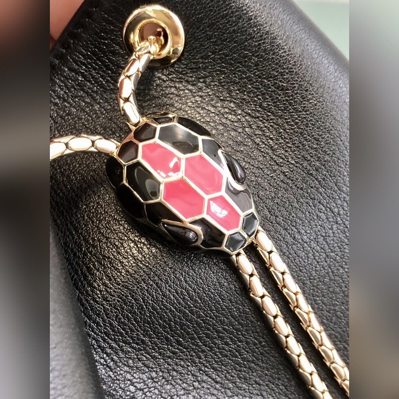 불가리 세르펜티 포에버 수입 송아지 가죽 버킷 백 모델 번호: 287806 램스킨 안감 불가리만의 방식으로 재해석된 실용적인 드로스트링 뱀 비늘을 모티브로 한 체인 디자인 클래식한 블랙과 톤 온톤 에나멜 뱀 머리 버클 블랙 오닉스 눈이 어우러져 그 매력을 뽐냅니다. 탈착식 손잡이와 뱀 모양의 가벼운 금도금 황동 소재의 가방 체인으로 착용감이 편안하고 활용도가 높습니다. 단일 저장 레이어 내부 금속 명판에 BVLGARI 로고 각인. 크기: 16-20-10.5cm