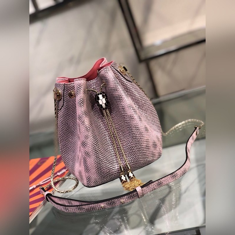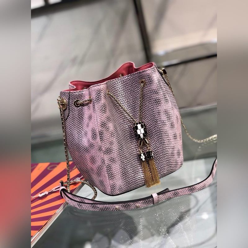 BVLGARI 붉은 물뱀 가죽 버킷백 모델: 287614 세 가지 색상이
