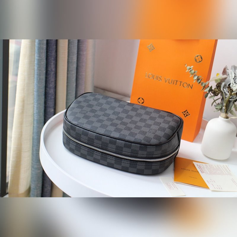 LV 세탁 가방 모델 M47527 이 초대형 화장품 가방은 넉넉한 용량과 세련된 외관을 자랑합니다. 부드러운 캔버스로 만들어졌습니다. 큰 이중 지퍼로 쉽게 물건을 넣고 꺼낼 수 있습니다. 패션 애호가에게 이상적입니다. 크기: 25.5 x 17 x 9cm 항목 번호: LD9618740