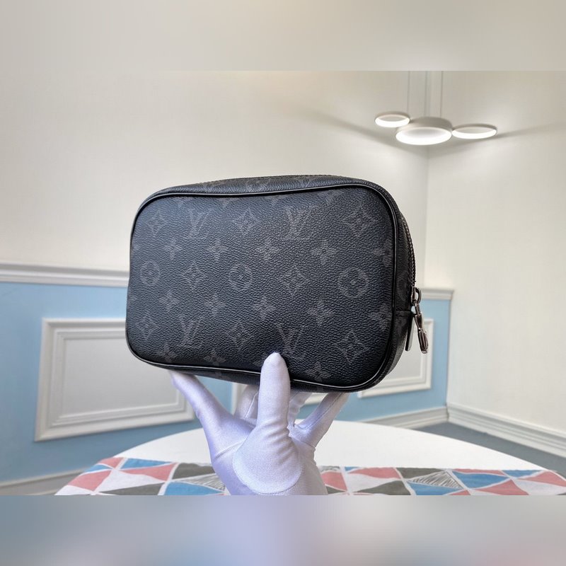 LV 모델 M47522 작은 검은색 꽃 작은 세면용품 가방 요즘 여행자들은 짧은 여행을 위해 여행 가방에 쉽게 넣을 수 있는 실용적인 세면도구 가방을 원합니다. 튼튼한 다미에 그라파이트 캔버스로 만든 작은 세면도구 가방이 바로 그런 제품입니다. 크기: 20.0 x 6.0 x 13.0cm 항목 번호: SG9618820