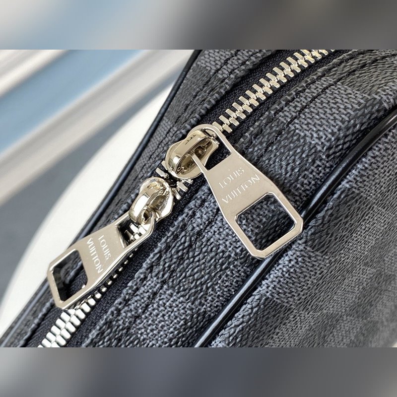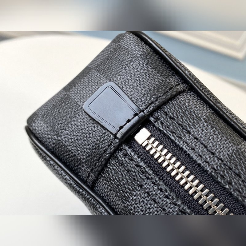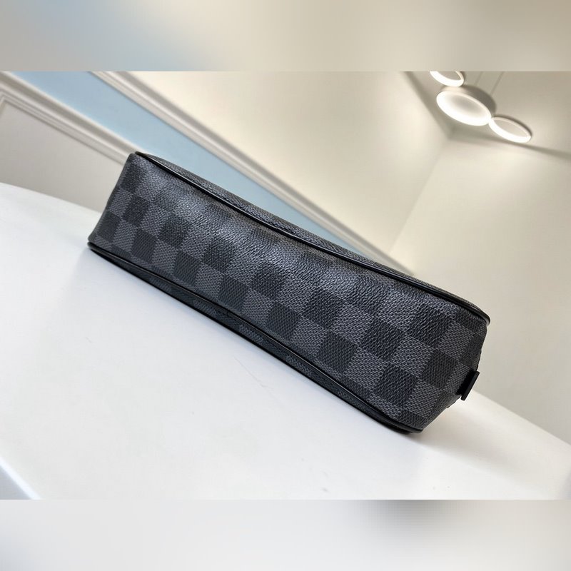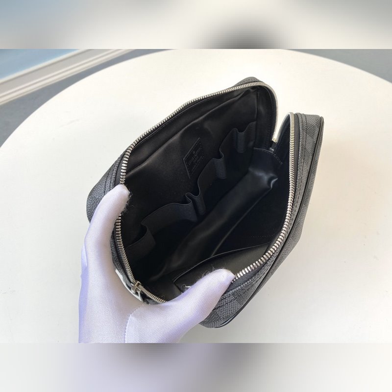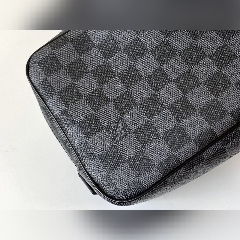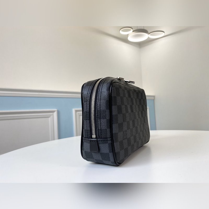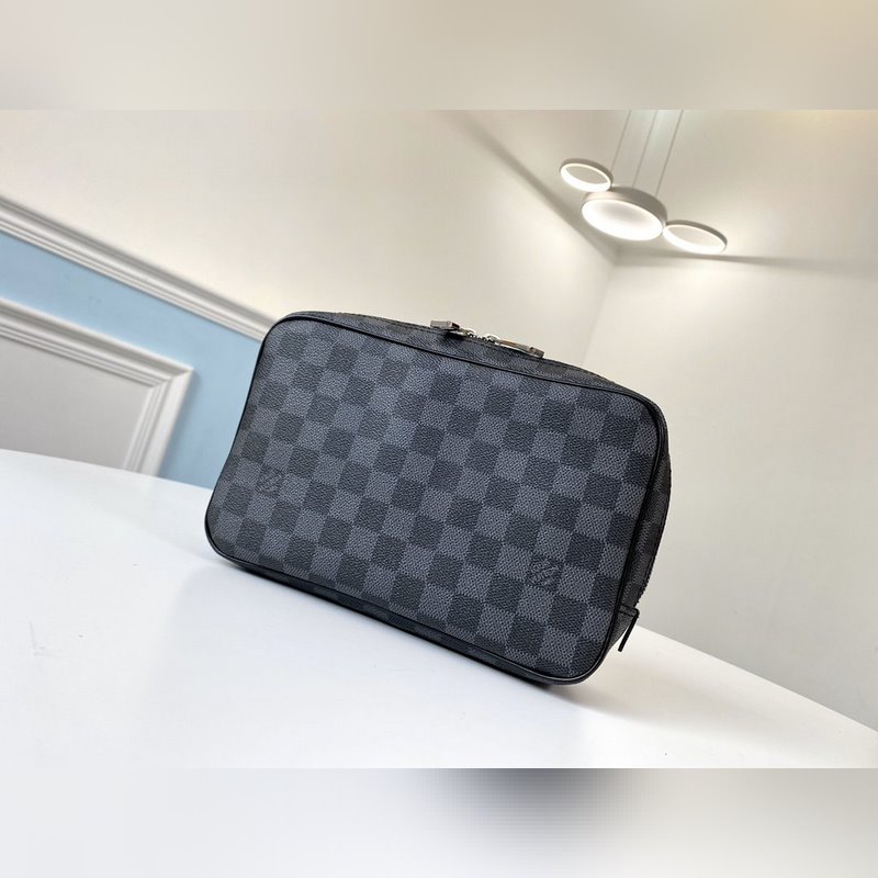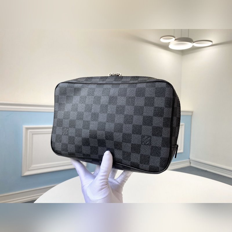 LV 모델 M47521 대형 세면도구 가방 요즘 여행자들은 짧은 여행을 위해 여행 가방에 쉽게 넣을 수 있는 실용적인 세면도구를 원합니다. 튼튼한 다미에 그라파이트 캔버스로 만든 대형 세면도구는 바로 그런 제품입니다. 크기: 26.0 x 7.0 x 17.0 cm 항목 번호: SG9618850