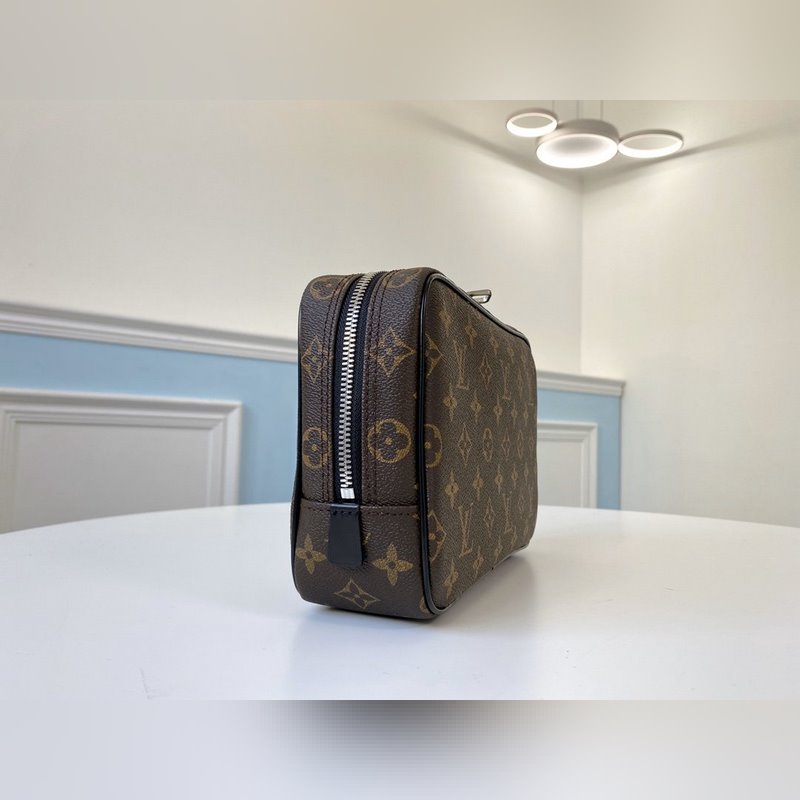 LV 모델 M43383 노안용 대형 세면 가방 요즘 여행자들은 짧은 여행을 위해 여행 가방에 쉽게 넣을 수 있는 실용적인 세면도구를 원합니다. 튼튼한 다미에 그라파이트 캔버스로 만든 대형 세면도구는 바로 그런 제품입니다. 크기: 26.0 x 7.0 x 17.0 cm 항목 번호: SG9618850