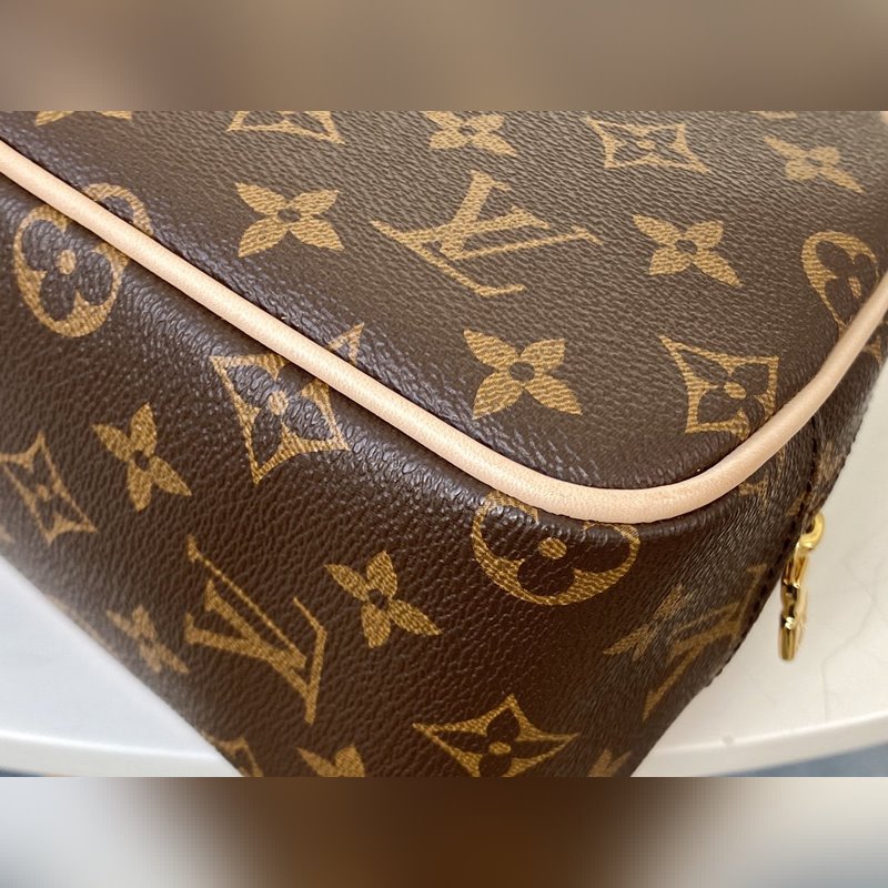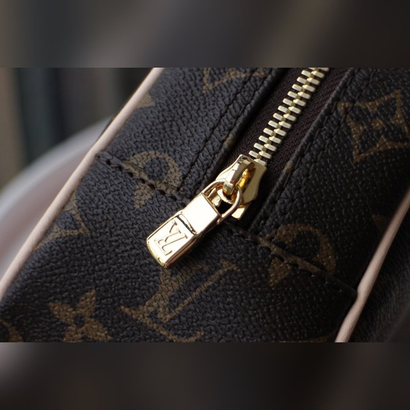 LV 모델 M47527 다미에 캔버스 세면도구 가방 이 Damier 캔버스 세면도구 가방은 내부 패치 포켓 세탁 가능한 안감 여행 가방에 쉽게 보관할 수 있는 약간 둥근 모양이 특징입니다. 크기: 25.5 x 17.0 x 9.0cm 항목 번호: SG9618820 LD9618780