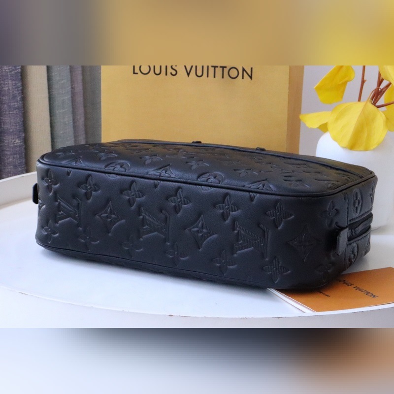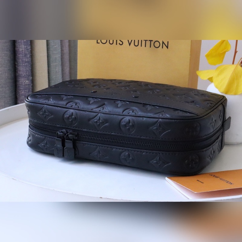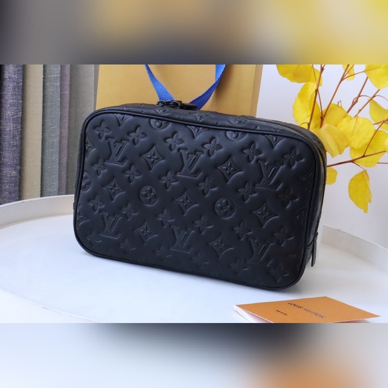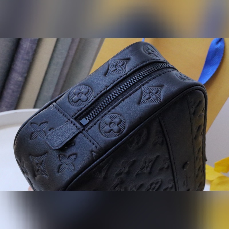 LV 대형 세면용품 가방 모델 번호 M68589 노즈비 가죽은 전체 폭에 걸쳐 고전적인 엠보싱을 적용하여 무광 금속 부분과 함께 우아한 디자인을 연출합니다. 입구가 넓고 안감이 쉽게 닦일 수 있어 여행에 적합한 제품입니다. 26 x 17 x 7cm 아이템 번호: LD9618940