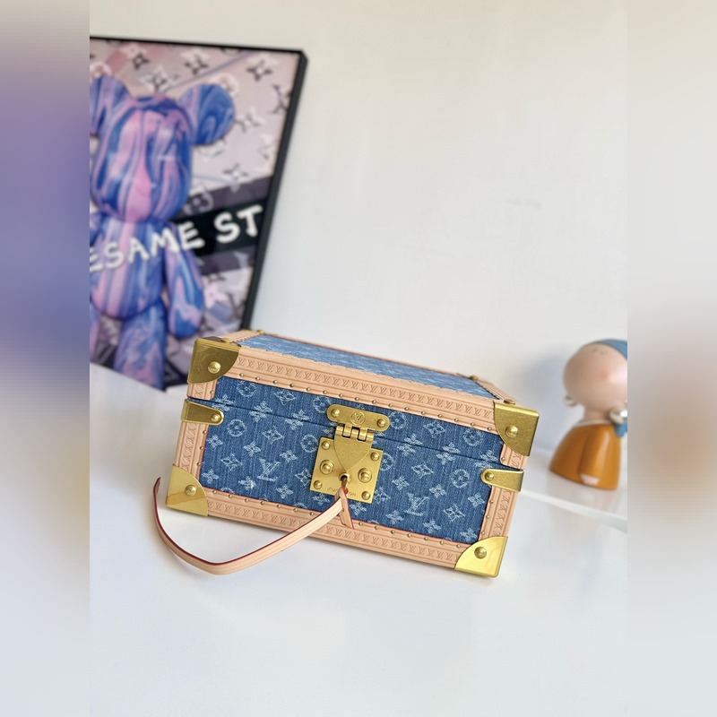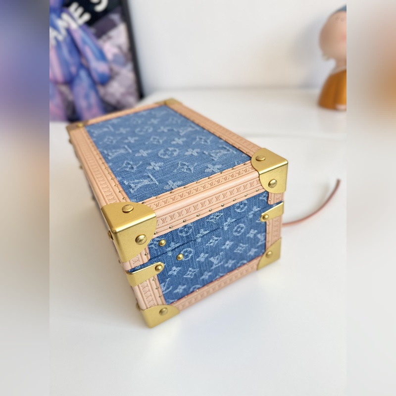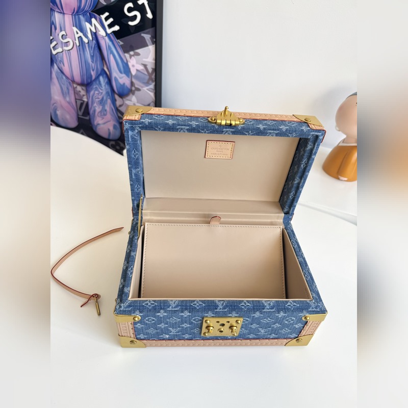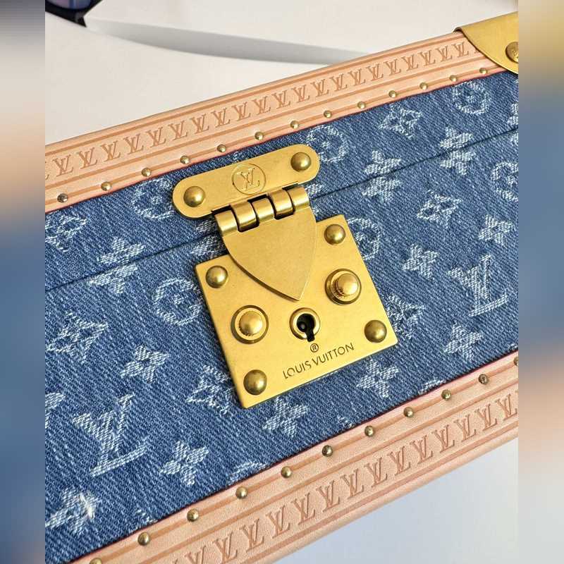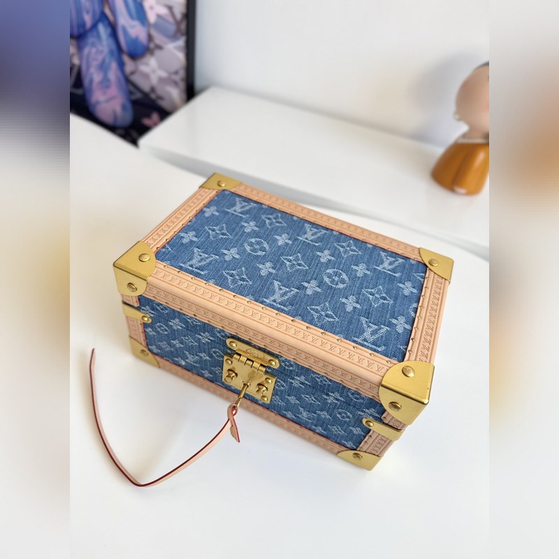 동적 칩 매칭 카운터 패키징 해외 오리지널 싱글 M24572 보석함의 실제 사진! Coffret Tr?sor 24 하드 케이스는 새로운 모노그램 데님 캔버스에 소가죽 트리밍으로 제작되었습니다. 중간 사이즈는 소중한 컬렉션을 안전하게 보관할 수 있습니다. 크기: 25×17.5×13.5cm