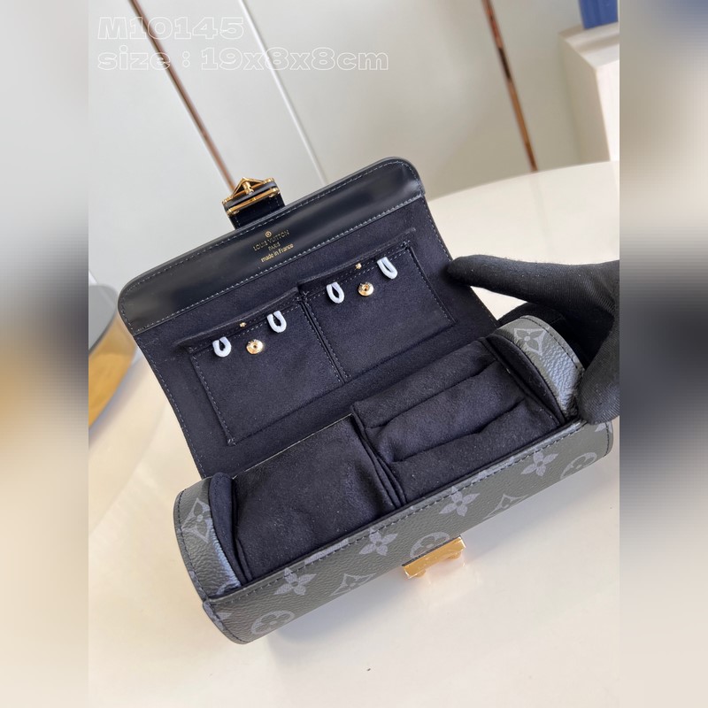최고급 오리지널 [독점 리얼 샷 M10145 블랙 플로럴] 이 Etui Bijoux 보석 상자는 모노그램 캔버스와 가죽 트림으로 정교하게 제작되었습니다. 크기는 작지만 내부 공간은 넉넉합니다. 내부 안전 주머니는 스냅 버튼으로 잠글 수 있습니다. 좌석 쿠션 중 하나에는 목걸이 시계 반지 팔찌 귀걸이를 보관할 수 있는 슬롯이 있습니다. 시선을 사로잡는 S자형 잠금 장치는 섬세한 여성미를 더해줍니다. 19 x 8 x 8cm(길이 x 높이 x 너비)