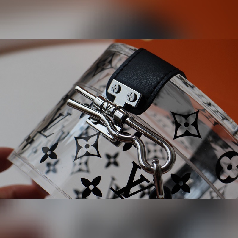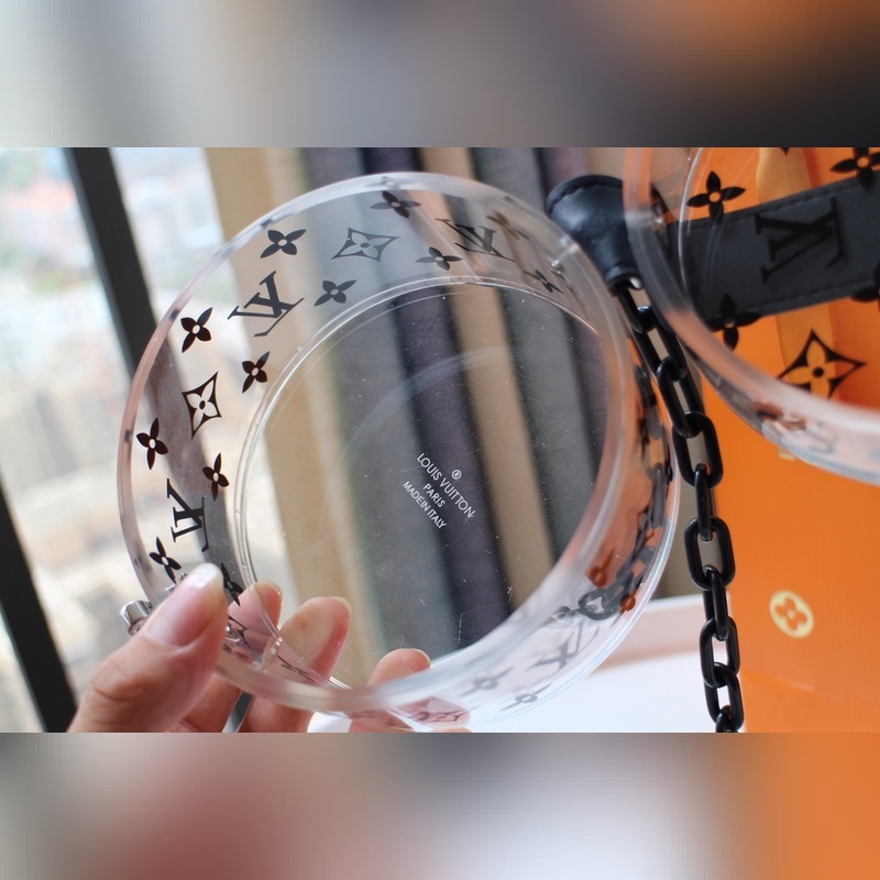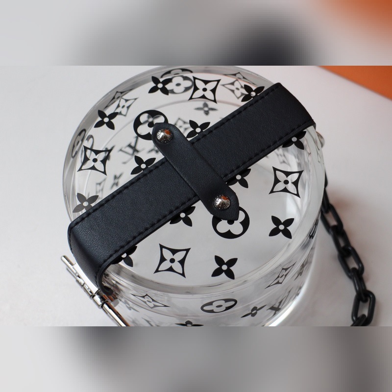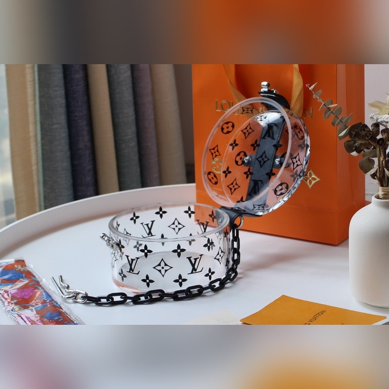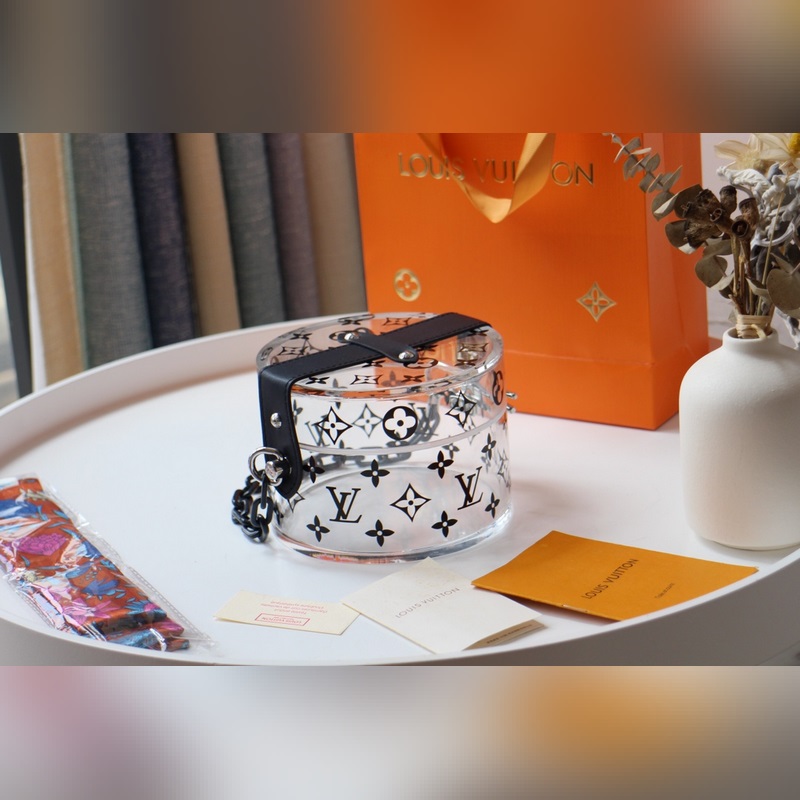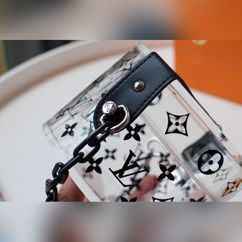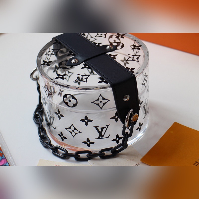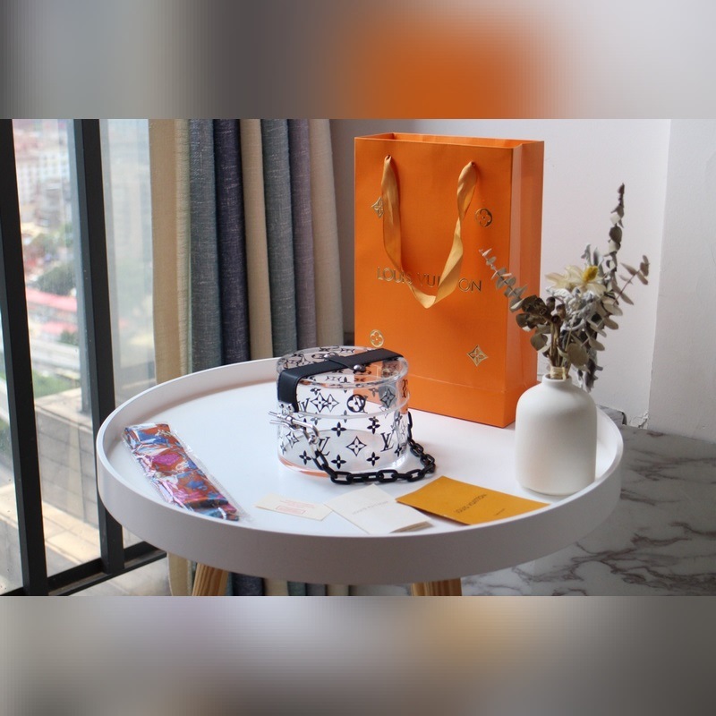 LV 상품 번호 GI0430 보관함 플렉시글라스에 인쇄된 보라색과 흰색 로고는 상자에 부드러운 느낌을 줍니다. 보라색 가죽 스트랩은 클래식한 여행가방 스타일의 자물쇠에 우아하게 부착되어 디자인을 더욱 돋보이게 합니다. 보석과 화장품을 보관하거나 화장대를 장식하는 데 사용할 수 있으며 선물용으로도 좋습니다. 크기 12.5x9x14cm 아이템 번호: LD9618760