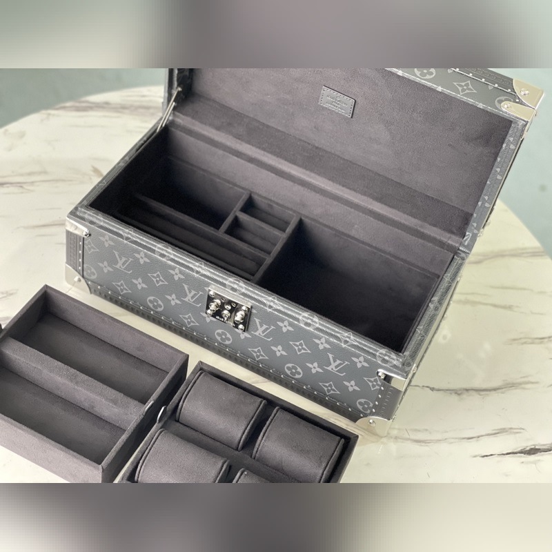 LV 상품 번호: M20209 블랙 플로럴 블랙 다용도 보관함 MCoffret 액세서리 하드 케이스는 모노그램 캔버스 소재의 클래식한 Coffret 8 Montres 하드 케이스의 디자인적 요소를 이어받아 시계나 커프스 단추와 같은 액세서리를 쉽게 휴대할 수 있습니다. 수납 공간에는 선글라스 커프스 단추 시계와 같은 액세서리를 보관할 수 있습니다. 상세 특징 39x 18 x 17 cm 아이템 번호: SG96181950