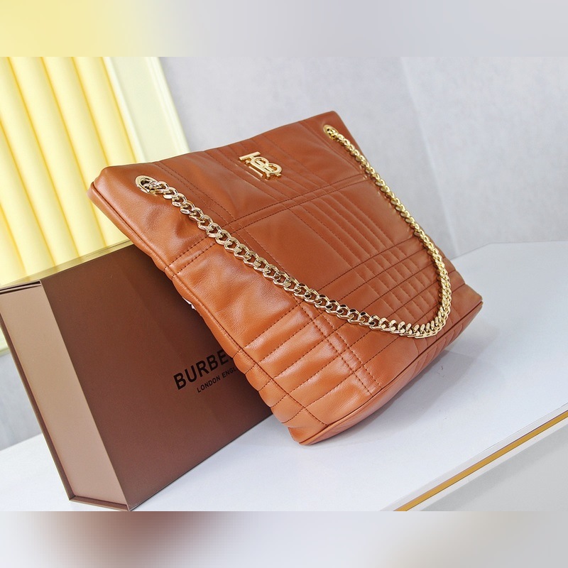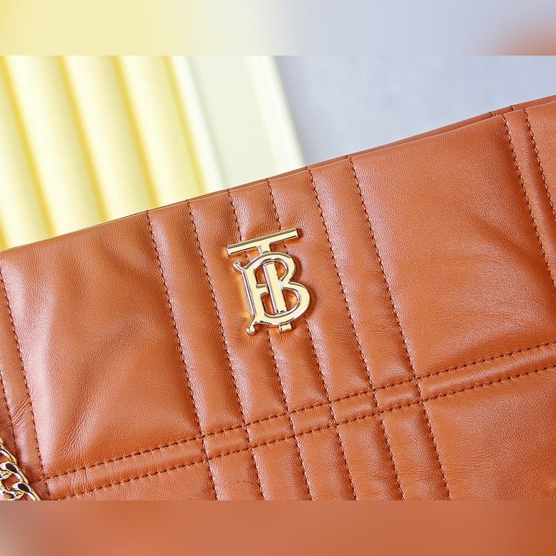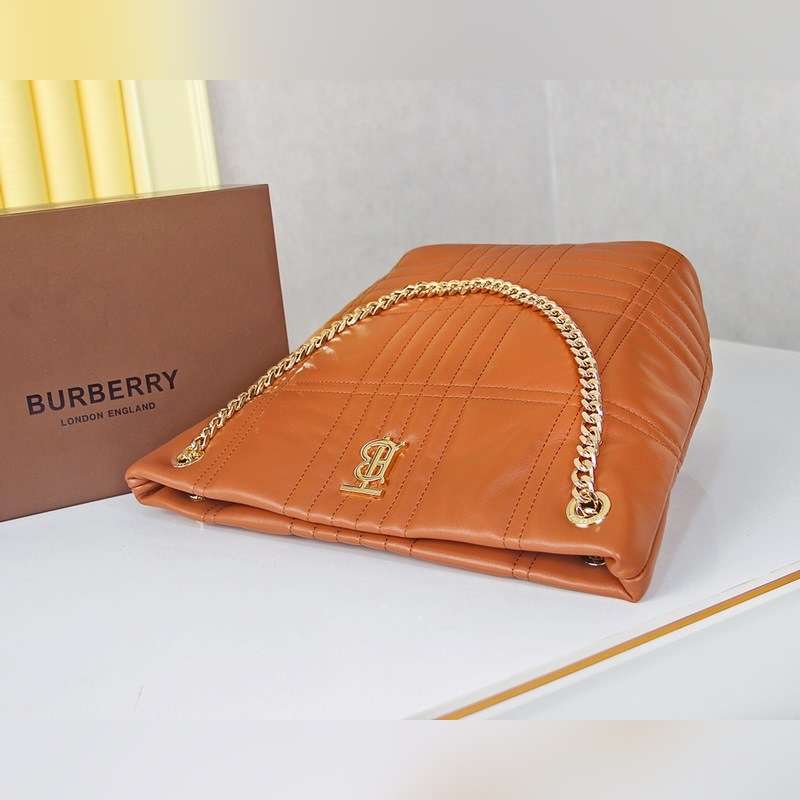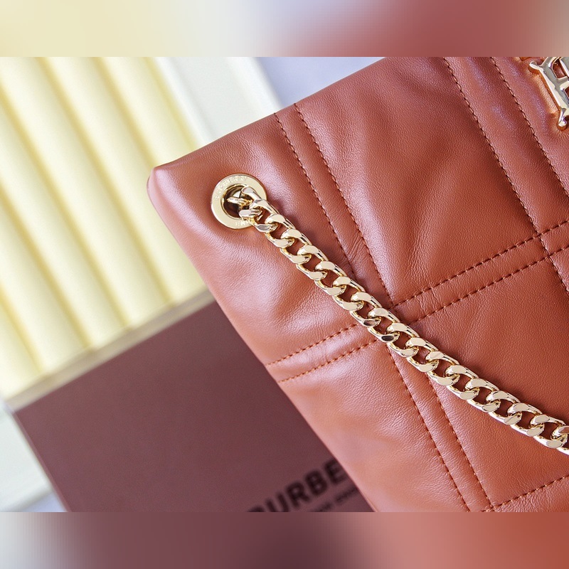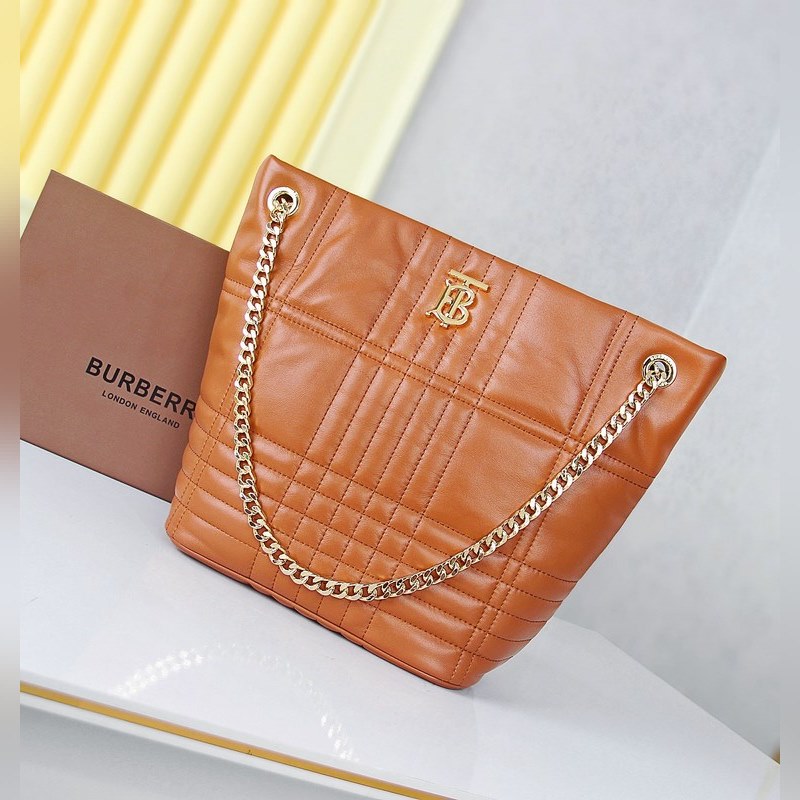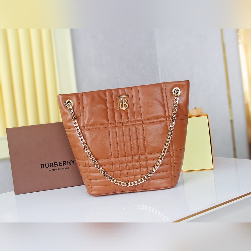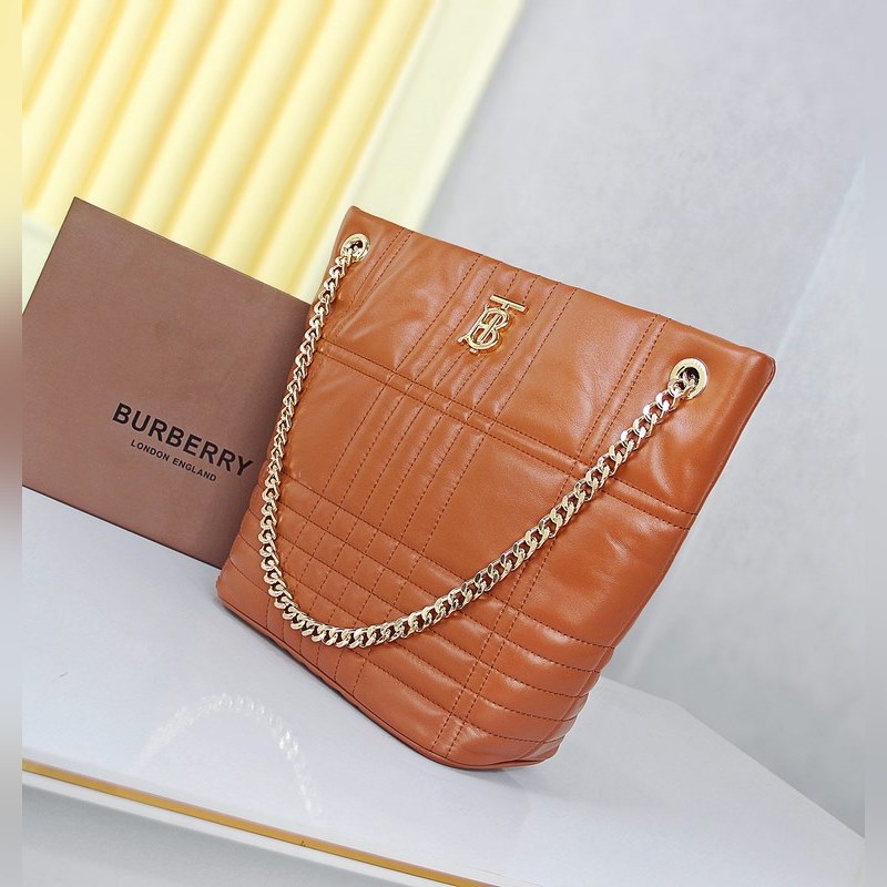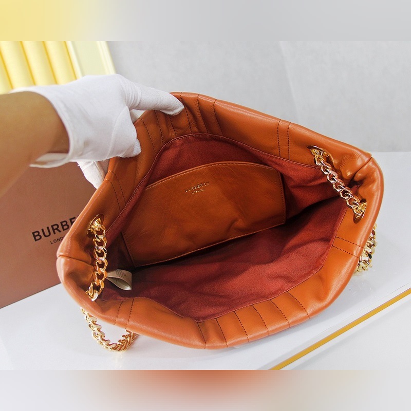 버버리 절묘한 퀼팅 모델 롤라 버킷 백 엄선된 부드러운 양가죽으로 제작되었으며 아름다운 올-쿠퍼 체인 숄더 스트랩과 앞면에 T-B 로고가 특징입니다. 어깨에 메거나 몸에 걸칠 수 있으며 어떤 스타일로 착용해도 멋지게 보입니다. 크기 38×12.5×30cm