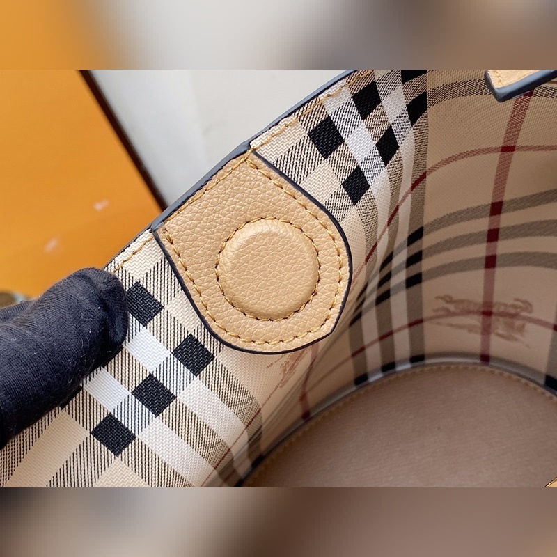 버버리 버킷백 숄더 스트랩 B의 미니멀리스트 크로스 바디 버킷 백은 이탈리아 장인의 가벼운 그레인 가죽으로 만들어졌으며 클래식한 헤이마켓 체크가 특징입니다. 컴팩트한 디자인으로 개인 소지품을 휴대하기에 적합하며 크로스 바디 또는 어깨에 메는 방식으로 착용할 수 있습니다. 스타일리시하고 실용적이며 낮과 밤의 룩에 모두 이상적입니다. 크기 18.5 x 15 x 23.5cm