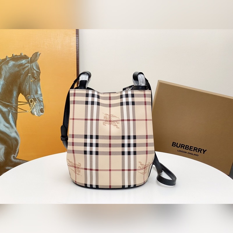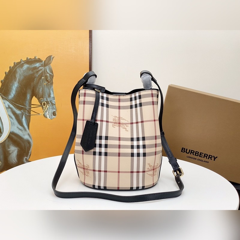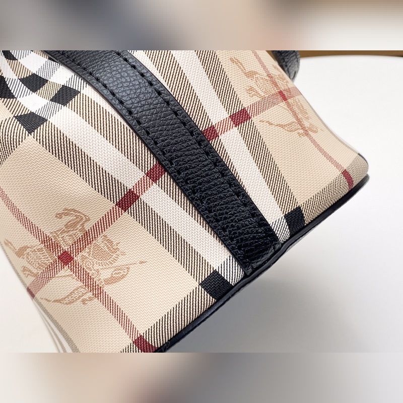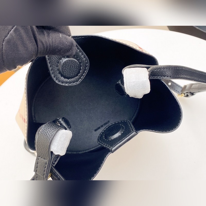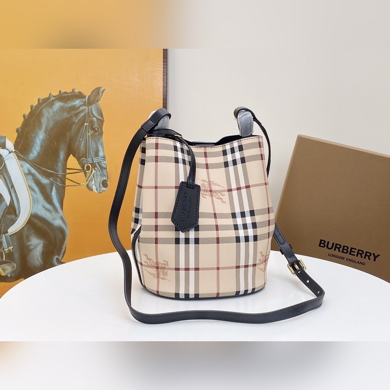 버버리 버킷백 숄더 스트랩 B의 미니멀리스트 크로스 바디 버킷 백은 이탈리아 장인의 가벼운 그레인 가죽으로 만들어졌으며 클래식한 헤이마켓 체크가 특징입니다. 컴팩트한 디자인으로 개인 소지품을 휴대하기에 적합하며 크로스 바디 또는 어깨에 메는 방식으로 착용할 수 있습니다. 스타일리시하고 실용적이며 낮과 밤의 룩에 모두 이상적입니다. 크기 18.5 x 15 x 23.5cm