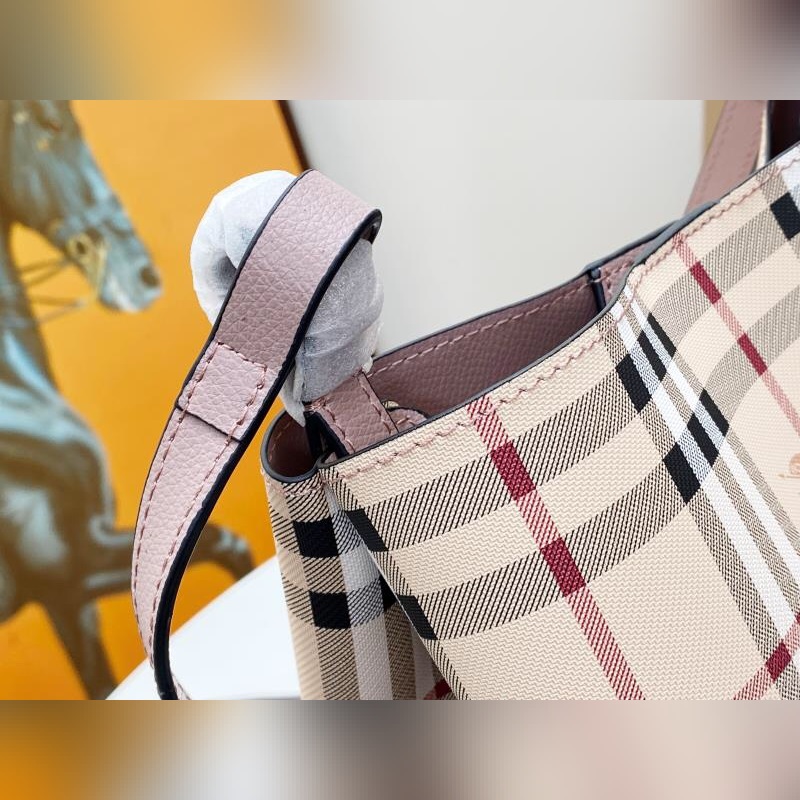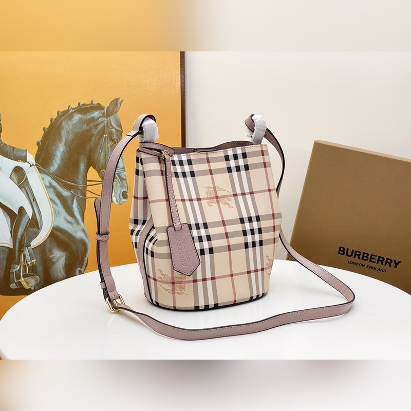 버버리 버킷백 숄더 스트랩 B의 미니멀리스트 크로스 바디 버킷 백은 이탈리아 장인의 가벼운 그레인 가죽으로 만들어졌으며 클래식한 헤이마켓 체크가 특징입니다. 컴팩트한 디자인으로 개인 소지품을 휴대하기에 적합하며 크로스 바디 또는 어깨에 메는 방식으로 착용할 수 있습니다. 스타일리시하고 실용적이며 낮과 밤의 룩에 모두 이상적입니다. 크기 18.5 x 15 x 23.5cm