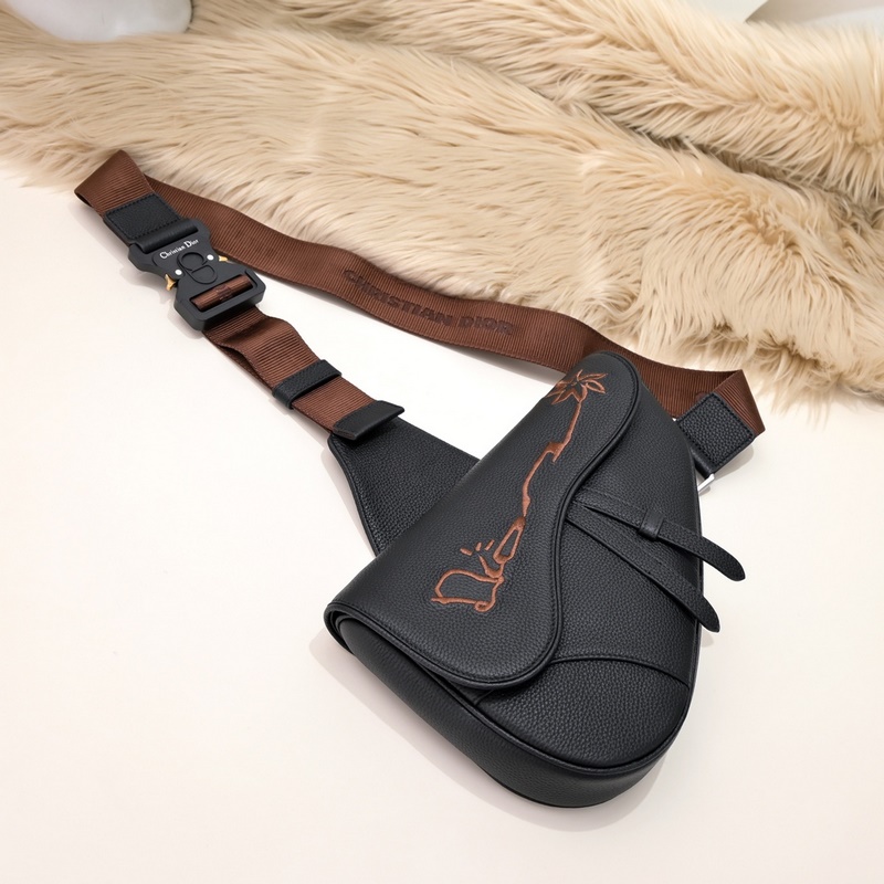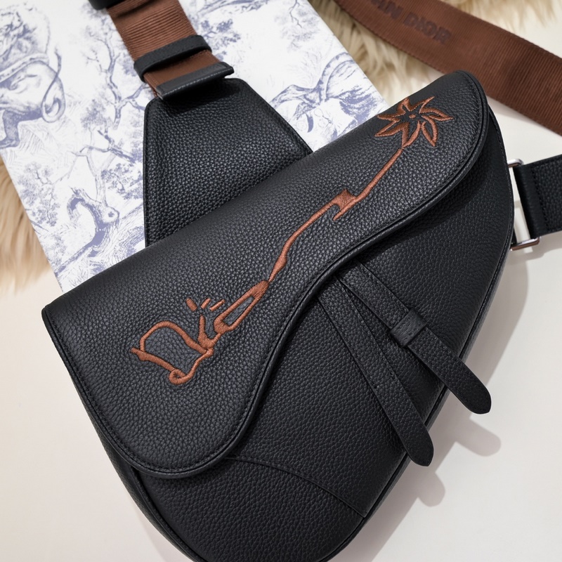이 새들백은 이번 시즌에 새롭게 선보이는 스타일입니다. 블랙 그레인 소가죽으로 제작되었으며 앞면에 CACTUS JACK DIOR 로고가 자수 처리되어 있습니다. 상징적인 자석 플랩과 숨겨진 지퍼 잠금 장치가 있으며 일상생활에 필요한 모든 물품을 안전하게 보관할 수 있습니다. CHRISTIAN DIOR 로고가 있는 조절 가능한 자카드 숄더 스트랩이 함께 제공됩니다. 참신한 스타일 독특한 매력 다용도성과 실용성을 갖추고 있으며 외출할 때 멋지게 보입니다. 크기: 26/19/4.5 센티미터