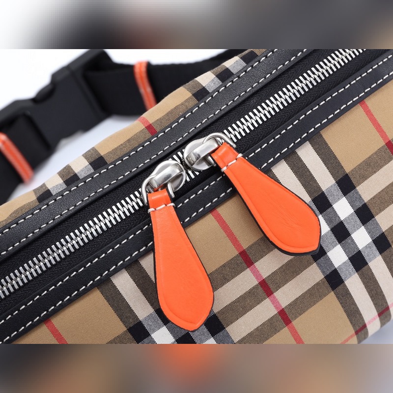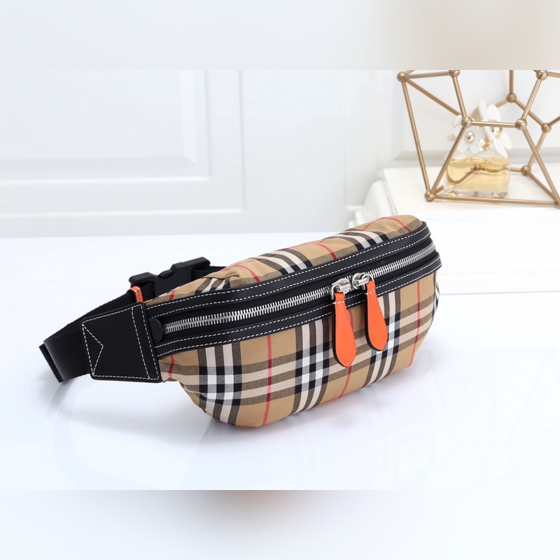B 홈 40716 새로운 클래식 체크 무늬 패니 팩 유니섹스 클래식 체크 무늬 양방향 지퍼 패니 팩 크로스 바디 백 크기: 31*7.5*16