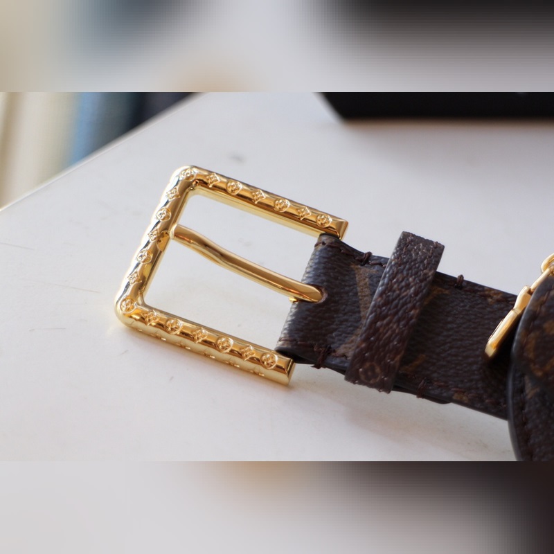 LV 데일리 멀티 포켓 벨트 파우치 No.: M0236U 허리띠 다용도 멀티 포켓 30mm 벨트는 기능적인 디자인과 장인 정신의 결합을 보여줍니다. 실용적인 스타일은 탈착식 파우치와 열쇠 고리를 포함하고 있으며 클래식한 모노그램 캔버스는 핀 버클을 강조합니다. 길이 105cm 상품 번호: LD9618800