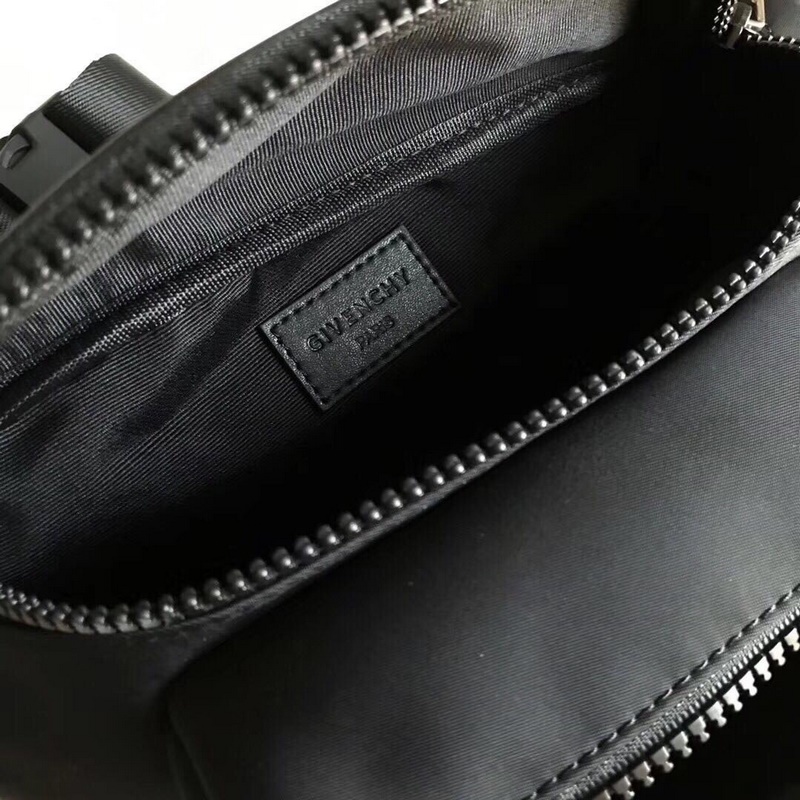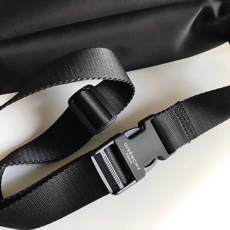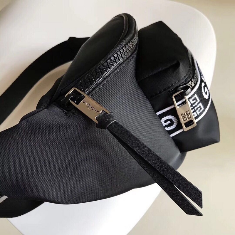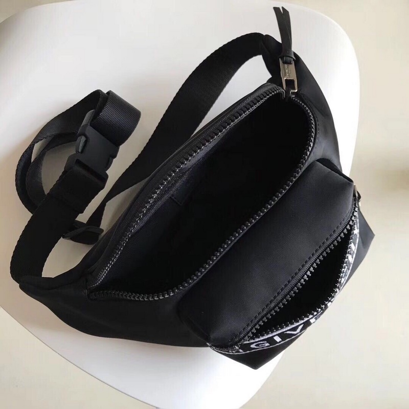 지방시 나일론 소재의 벨트백/가슴가방 소(사이즈: 33x9x12cm) 가방의 주요 구조는 지퍼가 달린 메인 수납공간과 앞쪽에 작은 지퍼 포켓이 있습니다. 검은색 가죽 지퍼 손잡이 검은색 캔버스로 만든 길이 조절 가능한 어깨 스트랩 허리 가방 또는 어깨 가방으로 사용 가능 남녀 공용 아이템 번호: YX9618680