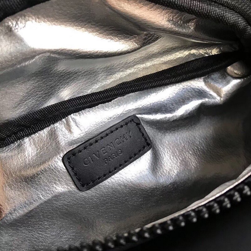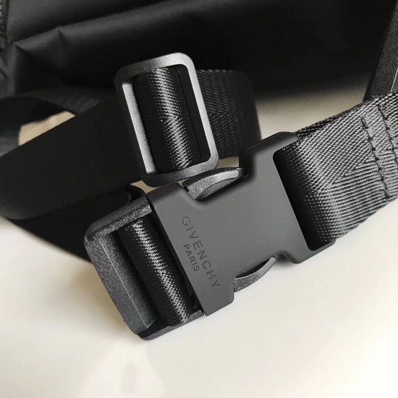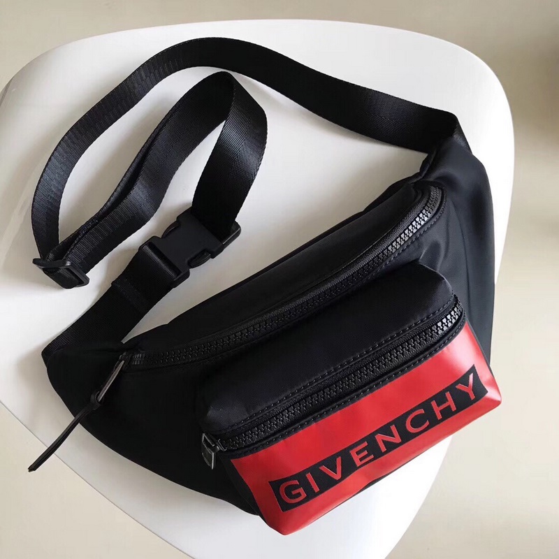 지방시 나일론 소재의 벨트백/가슴가방 소(사이즈: 33x9x12cm) 가방의 주요 구조는 지퍼가 달린 메인 수납공간과 앞쪽에 작은 지퍼 포켓이 있습니다. 검은색 가죽 지퍼 손잡이 검은색 캔버스로 만든 길이 조절 가능한 어깨 스트랩 허리 가방 또는 어깨 가방으로 사용 가능 남녀 공용 아이템 번호: YX9618680