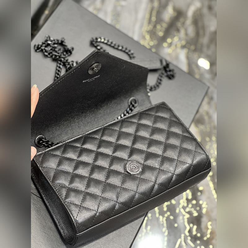 #Envelope#블랙 버튼 소형 그레인 압화 스티치 무늬 가죽 봉투백 클래식은 영원합니다. 하늘을 찌를 듯한 V자 무늬와 다이아몬드 패턴이 어우러진 캐비어 무늬는 매우 내구성이 뛰어납니다. 이탈리아산 소가죽에 눈에 띄는 Y자 로고가 더해져 고급스러움과 세련미를 동시에 선사합니다! 어떤 스타일에도 잘 어울리며 소형 사이즈임에도 불구하고 용량이 매우 넉넉합니다. 측면만 봐도 얼마나 많은 물건을 담을 수 있는지 알 수 있습니다! 모델: 526286 사이즈: 21x13x6cm