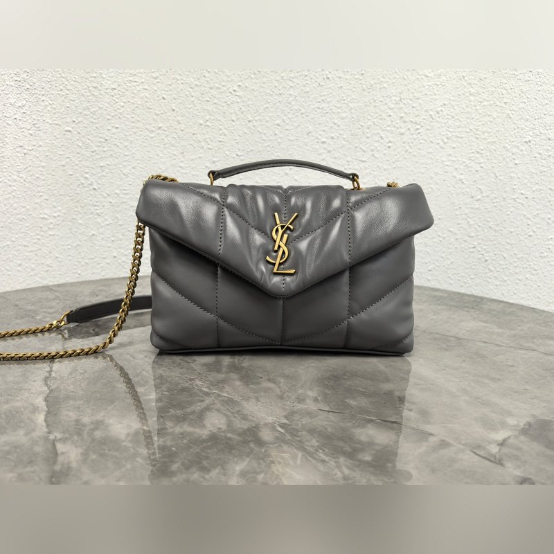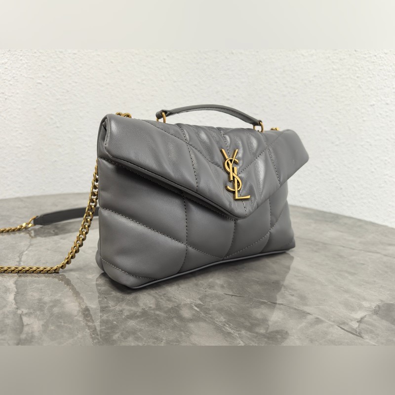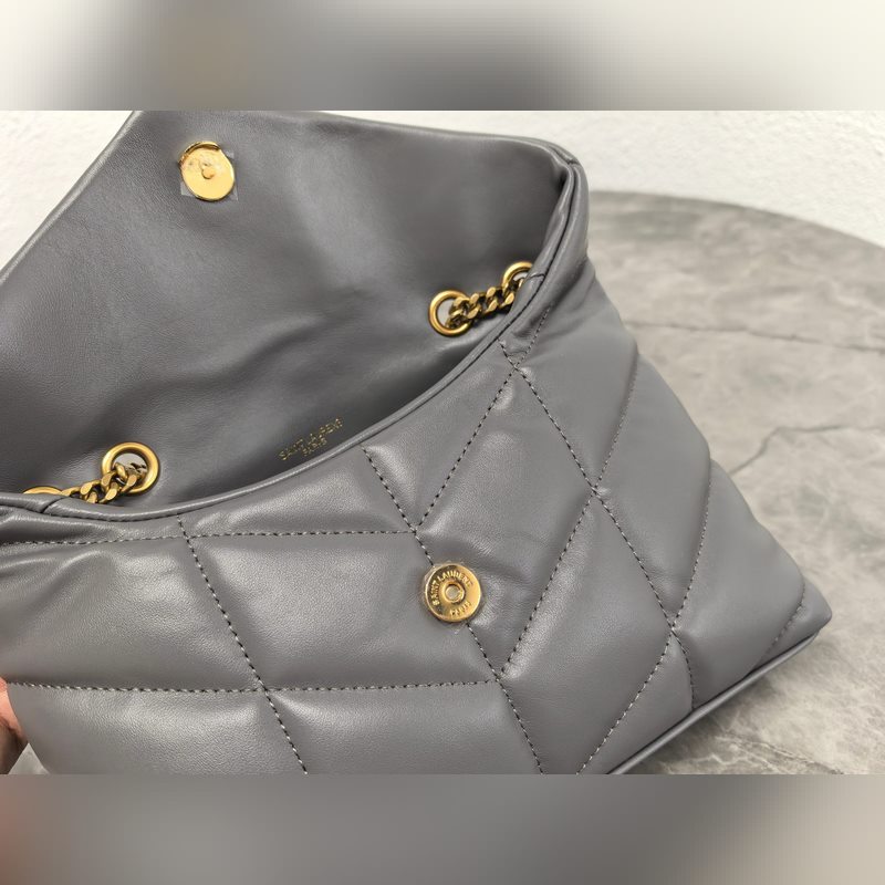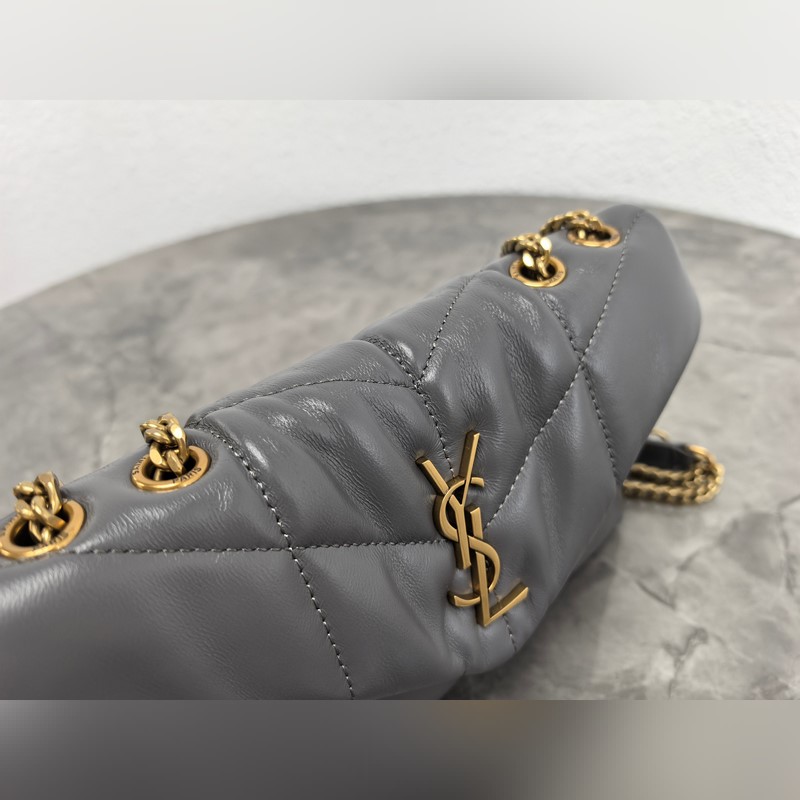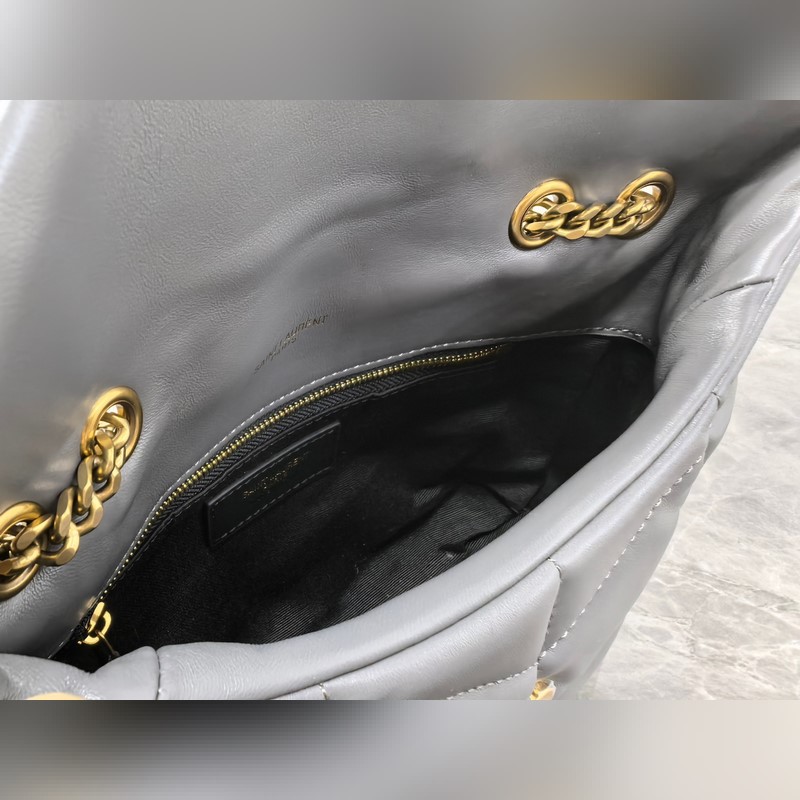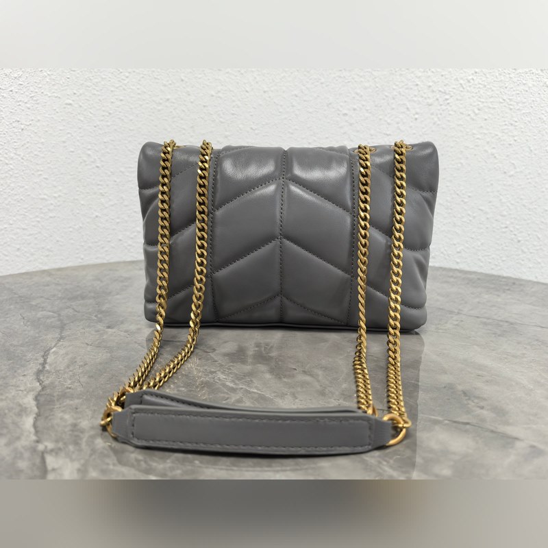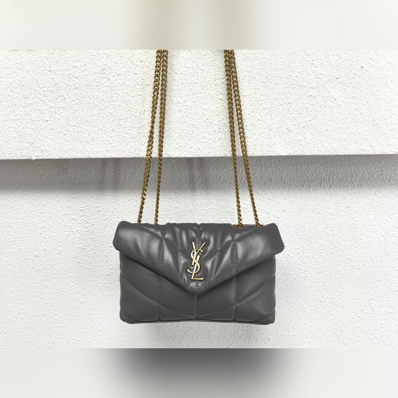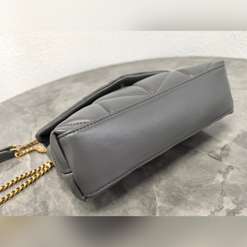 회색/골드 버클 더블 체인 LOULOU PUFFER MINI_미니 사이즈 더블 체인 백 출시! 전체 가방은 부드러운 이탈리아 양가죽으로 제작되었으며 Y자형 스트라이프 퀼팅 공법이 적용되었습니다. 부드러운 질감의 앞면 플랩 백에 탈부착 가능한 숄더 스트랩이 포함되어 수납백으로 활용 가능하며 조절 가능한 버클을 사용해 언더암 백으로도 연출할 수 있어 한 가방으로 다양한 스타일을 완성할 수 있습니다! 모델: 759337 사이즈: 23 x 15.5 x 8.5cm