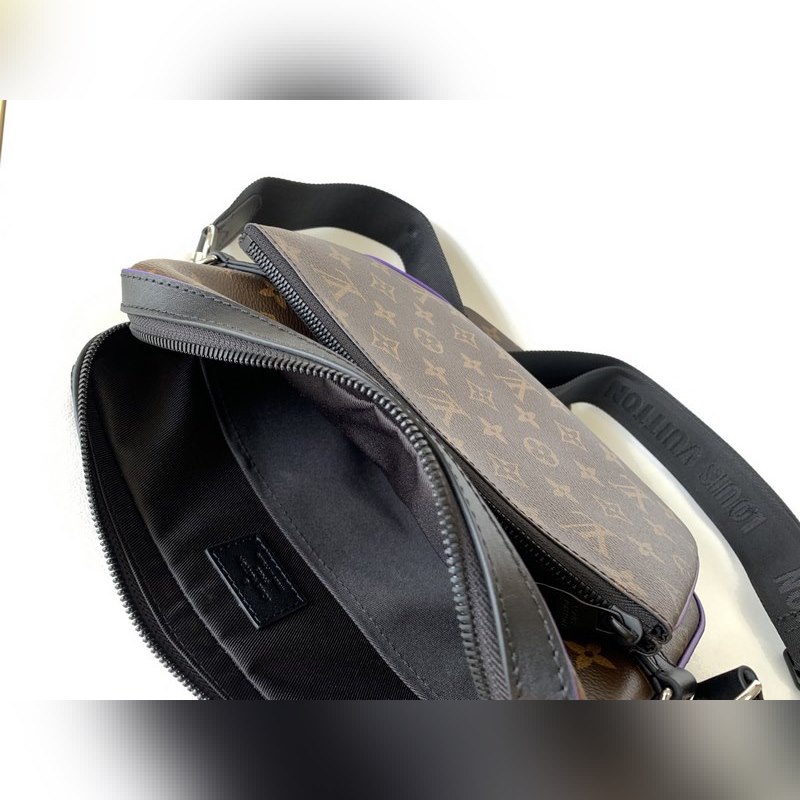 LV 트리오 독서용 안경 메신저 백 숄더백 크로스바디 백 모노그램 이클립스 캔버스와 모노그램 이클립스 리버스 캔버스로 제작되었습니다. 아이코닉한 그레이 톤의 패턴이 다용도 믹스 앤 매치 디자인의 라인을 강조합니다. 전통적인 크로스 바디 핸드백 기능 외에도 탈착식 지퍼 포켓과 스트랩에 부착된 동전 지갑이 함께 제공됩니다. 크기: 25.0 x 18.5 x 7.0cm