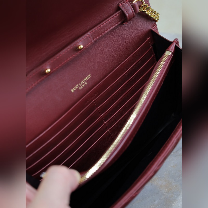대추색 금색 단추 양가죽 MONOGRAM_봉투형 핸드백. 실용성 최고인 소형 가방 가장 클래식한 디자인에 최고급 버전으로 업그레이드. 100% 이탈리아산 양가죽에 정교한 수제 제작. 맞춤형 금속 Y 로고로 개성 표현. 플랩 디자인으로 사용 안전성 확보. 작은 사이즈에 대용량 수납: 지폐 수납공간 2개 중앙 수납공간 2개 지퍼 내부 포켓 1개 및 다중 카드 슬롯으로 모든 것을 담을 수 있습니다! 모델: 377800 28 사이즈: 22.5x14x4cm