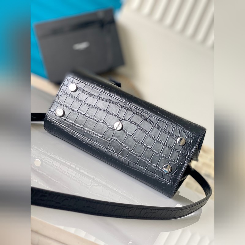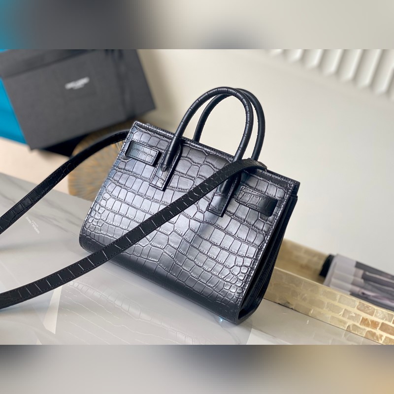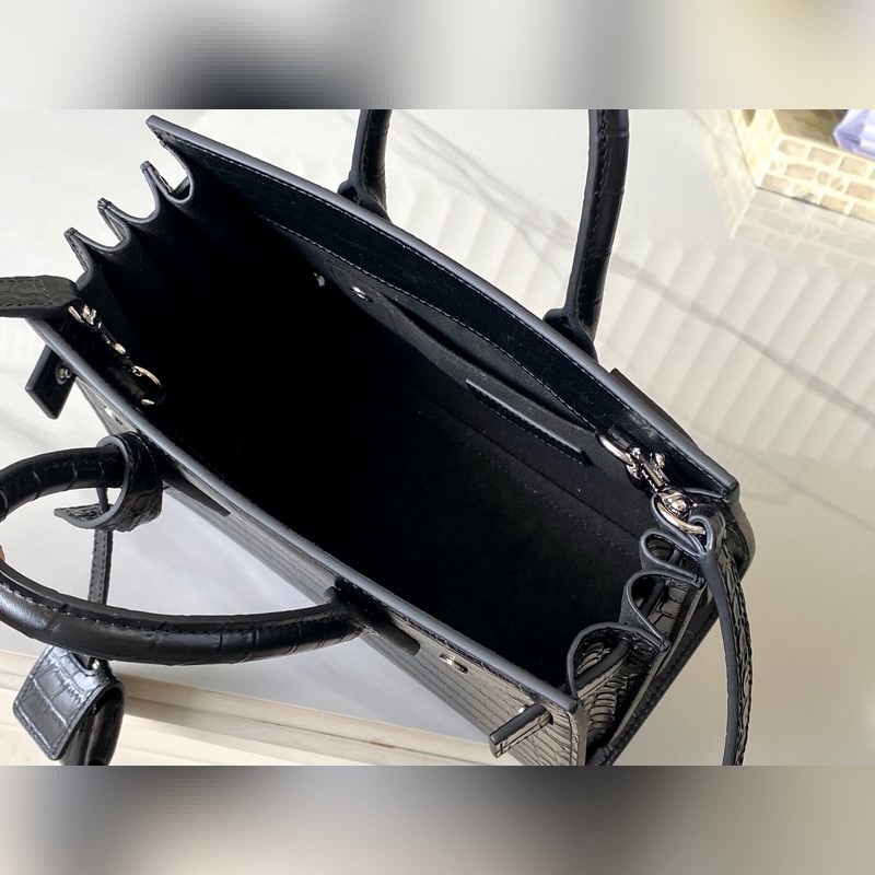 [사크 드 주르] (포장 제외) Y 브랜드의 가장 클래식한 아코디언 백 소가죽 악어 무늬_ 미니 사이즈 블랙 22cm_ 긴 숄더 스트랩 포함! 영수증 수납 공간 1개_! 내부 넓은 공간 설계_ 구획의 제약 해제! 무엇이든 마음껏 넣을 수 있습니다! 영원히 유행에 뒤처지지 않는 디자인_ 수십 년이 지나도 여전히 세련된 스타일! 모델: 34077 [크로코 무늬 실버 버클] 사이즈: 22x18x11cm