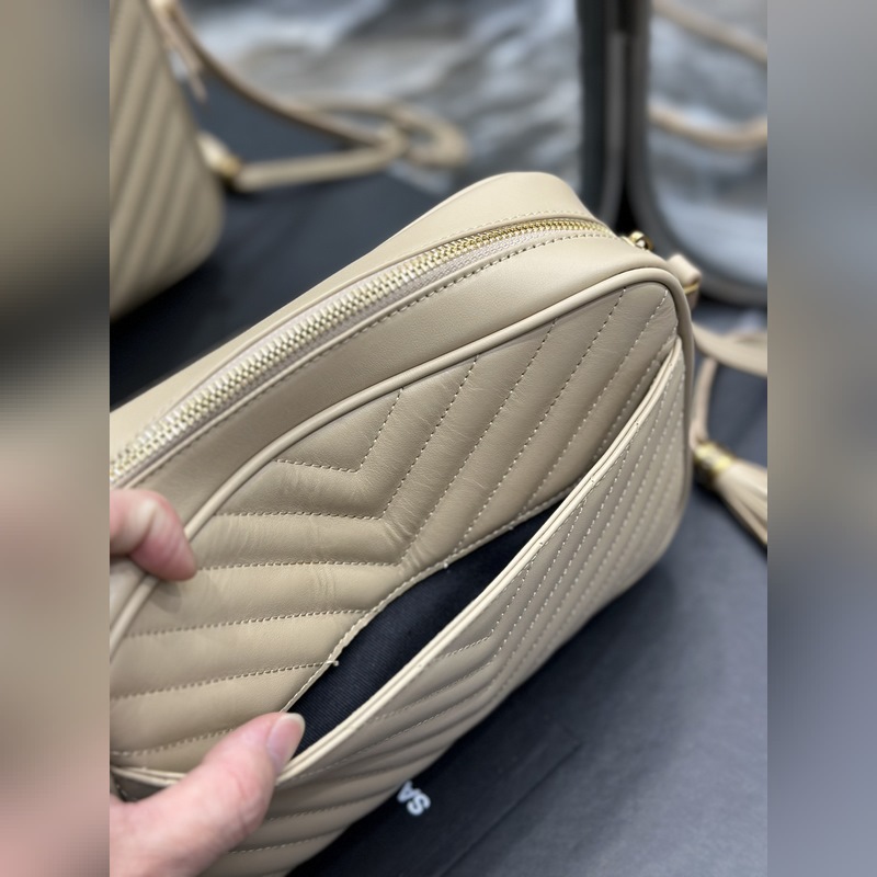 Lou 카메라 가방_복숭아색 골드 버클 최고급 수입 이탈리아 소가죽 카메라 가방 홍콩에서 구입한 zp 금형을 사용해 똑같이 제작! 매우 정교합니다! 조절 가능한 숄더 스트랩과 세련된 술 장식! 100% 송아지 가죽 로얄 새틴 안감! 내부에는 내장 포켓 1개! 뒷면에 추가된 포켓으로 실용적이고 고급스러운 디자인! 모델: 520534-1 사이즈: 23x16x6cm