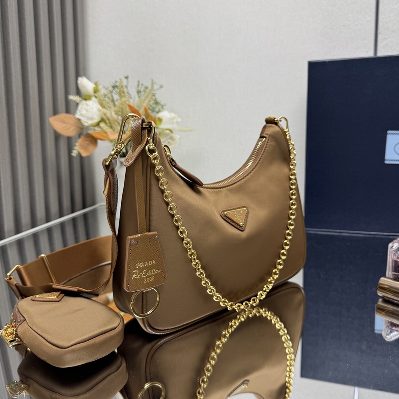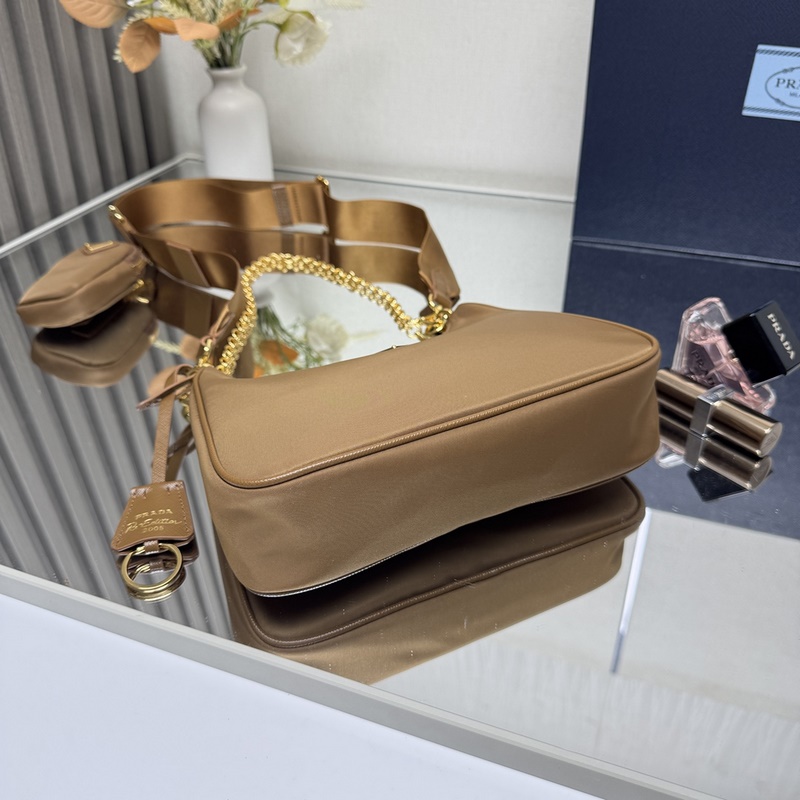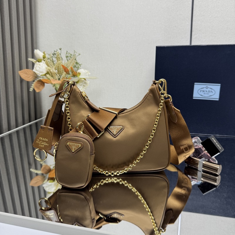 [탑급 오리지널] 프라다 신상 나일론 호보 핸드백/골드 하드웨어 언더암 백 인플루언서 자매들이 열광하며 패션계를 강타한 호보 백의 신제품 출시! 이 호보 백 디자인이 정말 최고예요. 한 가방으로 세 가지 스타일: 웨이스트 백/크로스백/ 단독 크로스백으로 활용 가능! 손잡이를 체인으로 교체해 어깨에 걸면 섹시한 매력이 더해지고 긴 숄더 스트랩도 함께 제공됩니다. 가장 마음에 드는 점은 스트랩에 작은 액세서리(소형 파우치)가 달려 있어 다른 가방이나 바지 허리띠에 걸어 코디할 수 있다는 거예요. 평소 어떤 의상과도 완벽하게 어울려요. 여러분 서둘러 구매하세요! 너무 예뻐요! 모델: 1BH204 사이즈: 가로 22X높이 12x바닥 6cm