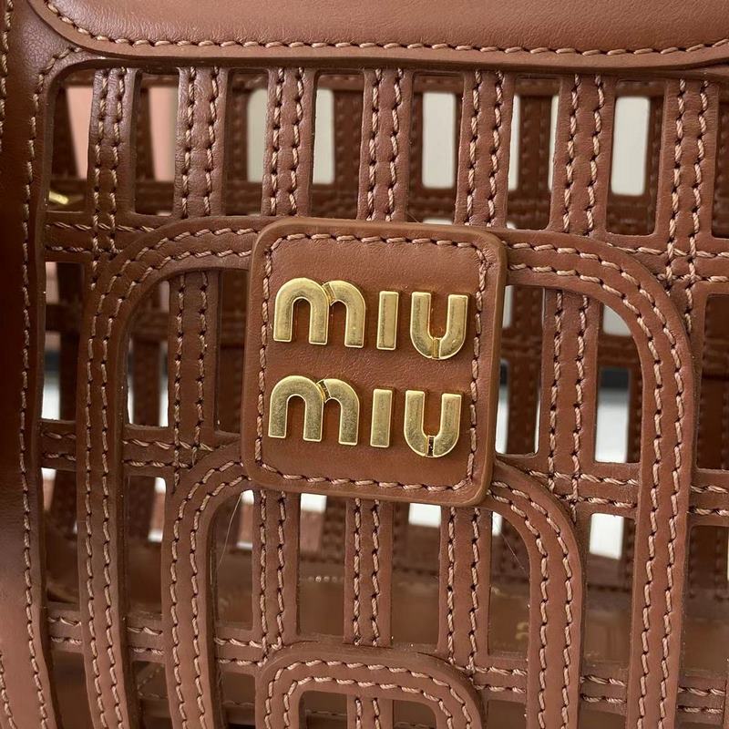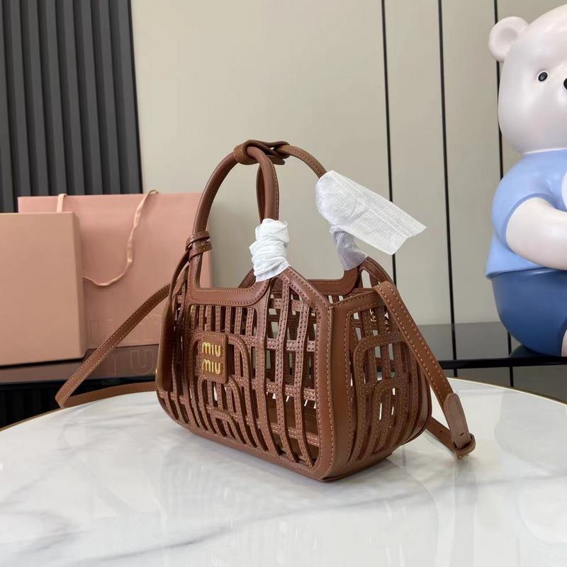 MIUM 신상 장바구니 부드러운 나파 가죽 핸드백. 정교한 직조 패턴과 독특한 구조 디자인으로 여름 분위기를 한껏 살렸습니다. 복잡한 공정이 MIU 시리즈의 정교하고 우아한 아름다움을 구현합니다. 탈부착 및 길이 조절이 가능한 가죽 롱 숄더 스트랩 내부 지퍼 소형 파우치 액세서리가 실용성을 더해 출근 야외 피크닉 휴가 등 다양한 상황에서 완벽한 선택입니다. 모델: 5BA294. 사이즈: 24 X 12.5 X 9 cm 색상: 브라운 바스켓