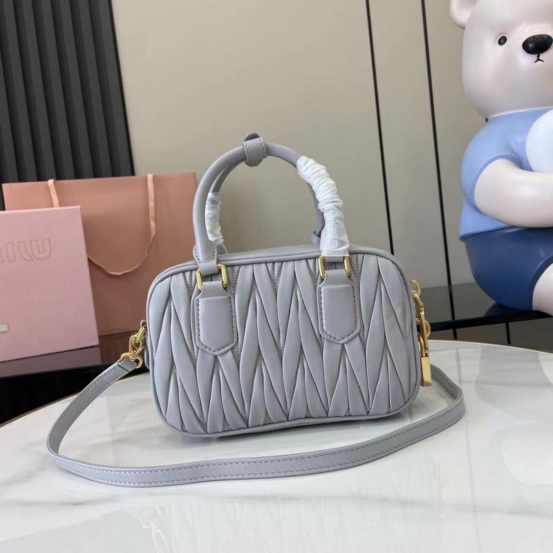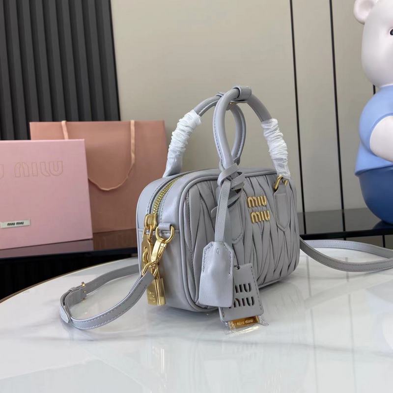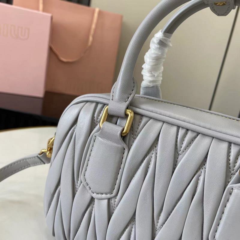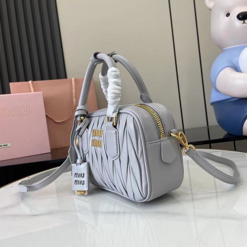 아르카디 마텔라세 양가죽 소형(19cm) 볼링백/크로스백~진주 회색