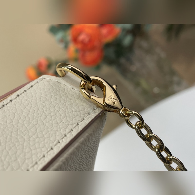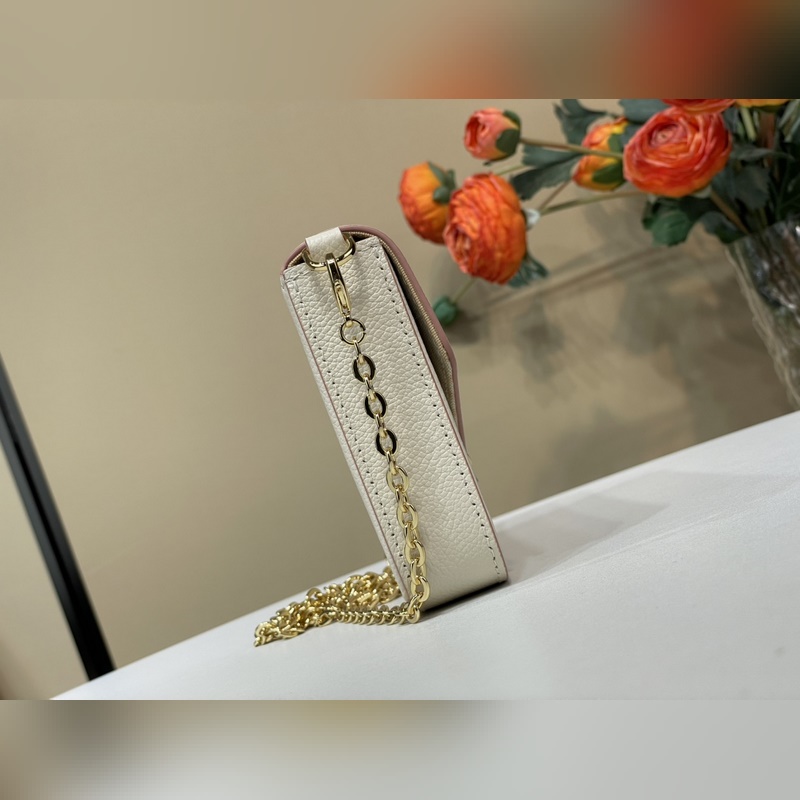 최상급 원단 복제품 독점 실물 촬영 [포셰트 펠리시 체인 백] m64064 15968 크림 앵두색(자수) 포셰트 펠리시 체인 백은 동색 미학으로 클래식 모노그램 엠프린트 가죽을 재해석했습니다. 봉투형 구조로 여는 넉넉한 내부 공간에는 지퍼 수납공간과 카드 수납공간이 마련되어 있습니다. 탈부착 가능한 체인을 활용해 다양한 착용 방식을 탐색하세요. 그레인 소가죽 안감 금속 부품 탈부착 가능한 체인 버튼 여밈 대형 수납공간 탈부착 가능한 지퍼 포켓 탈부착 가능한 패치 포켓 카드 수납공간 내부 포켓 포함 사이즈: 21.0 x 12.0 x 3.0cm