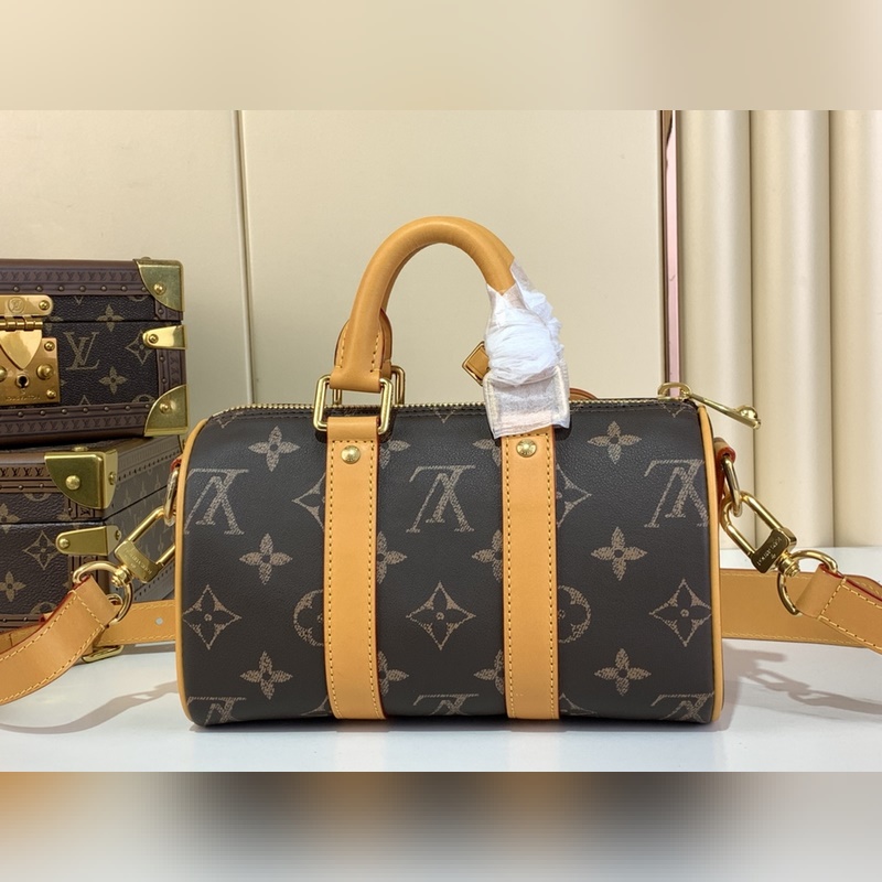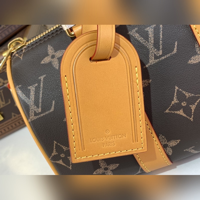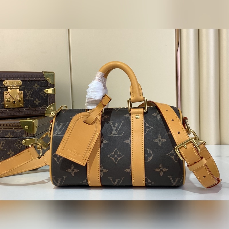 최상급 원단 복제품 독점 실물 촬영 [KEEPALL BANDOULI?RE 25 핸드백] m14026 빈티지(풀 가죽) 이 Keepall Bandouli?re 25 핸드백은 부드러운 소가죽으로 제작되었으며 모노그램 프린트는 초대 모노그램 캔버스 패턴을 대형으로 재해석했습니다. 가죽 마감 처리로 빈티지한 느낌을 더했습니다. 이 정교한 도시형 핸드백에는 탈부착 가능한 금속 태그가 달려 있으며 이는 브랜드 최초의 여행 가방 디자인에서 영감을 받았습니다. 사이즈: 15 x 11 x 25 cm.