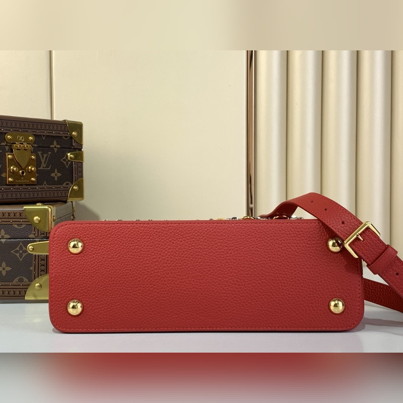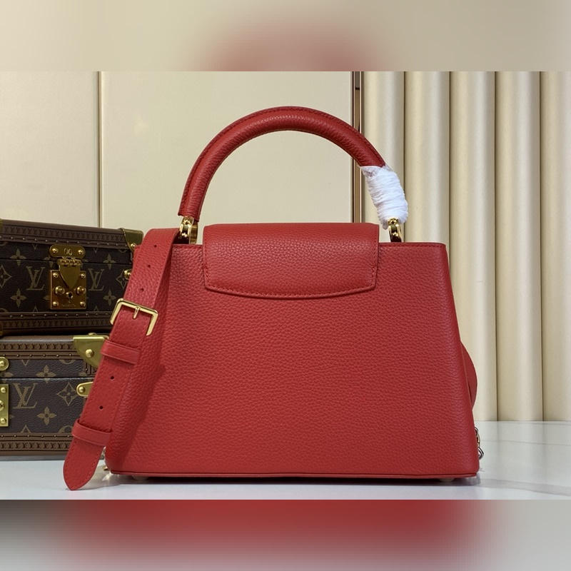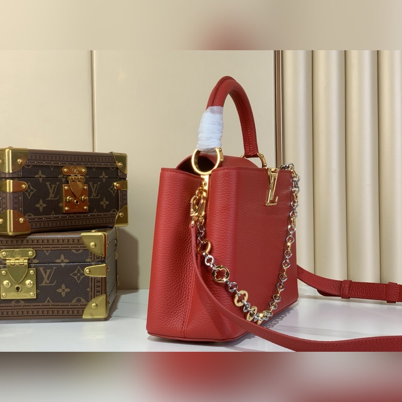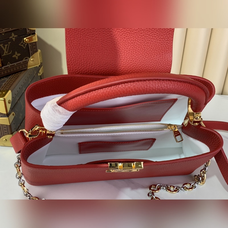 최상급 원단 복제품 독점 실물 촬영 [CAPUCINES 미디움 핸드백] M48865 M12935 레드/주얼리 체인 본 Capucines 미디엄 핸드백은 Chain On You 시리즈로 Taurillon 소가죽이 브랜드의 정교한 디자인과 우수한 장인정신을 강조합니다. 주얼리 스타일의 이중 도금 체인이 Monogram 플라워를 장식하며 둥근 LV 로고와 금속 디테일이 세심한 터치를 더합니다. 크로스백 핸드백 숄더백으로 활용 가능하며 우아한 스타일을 연출합니다. 사이즈: 20 x 11 x 31.5 cm (높이 x 너비 x 길이)