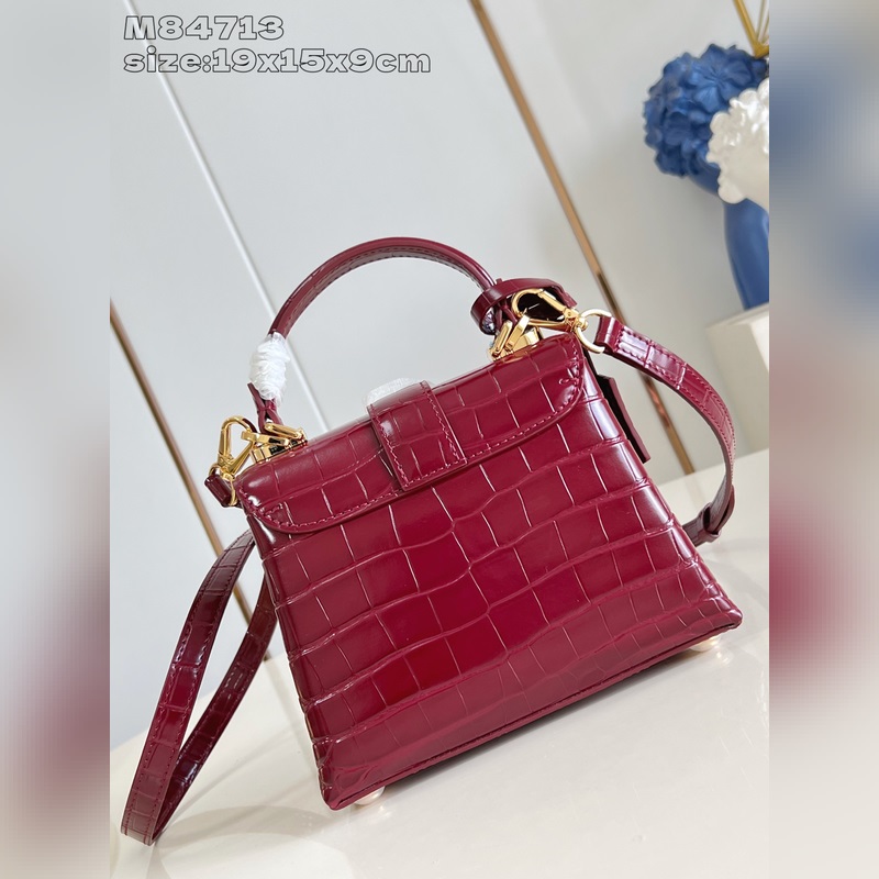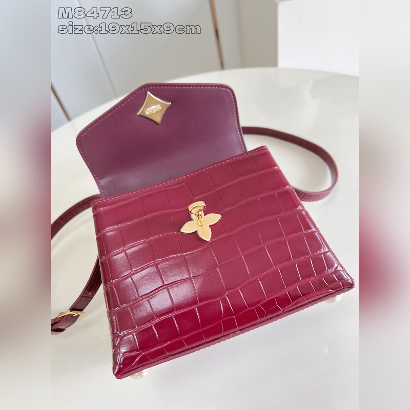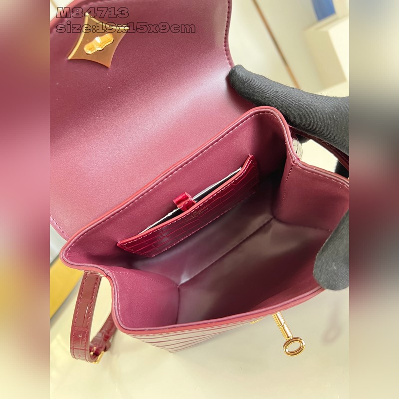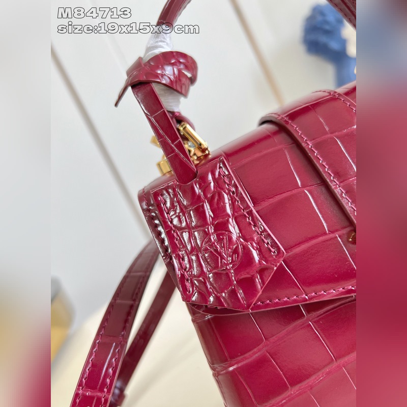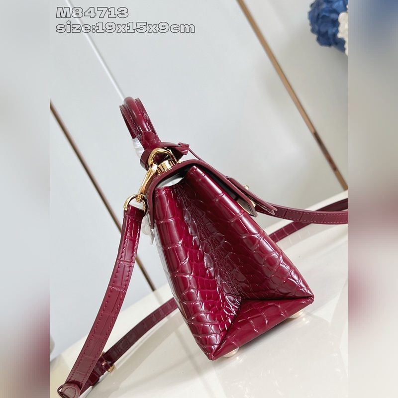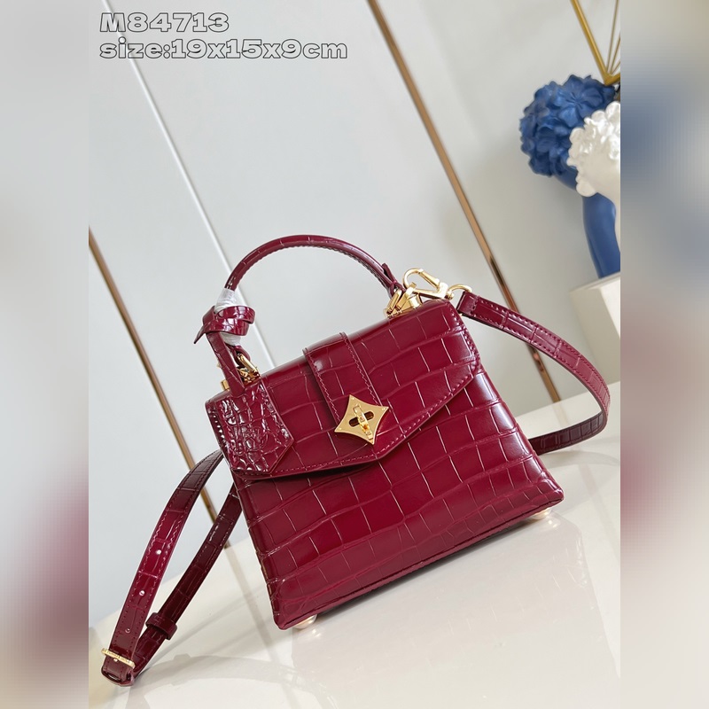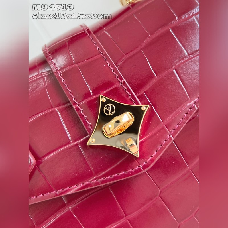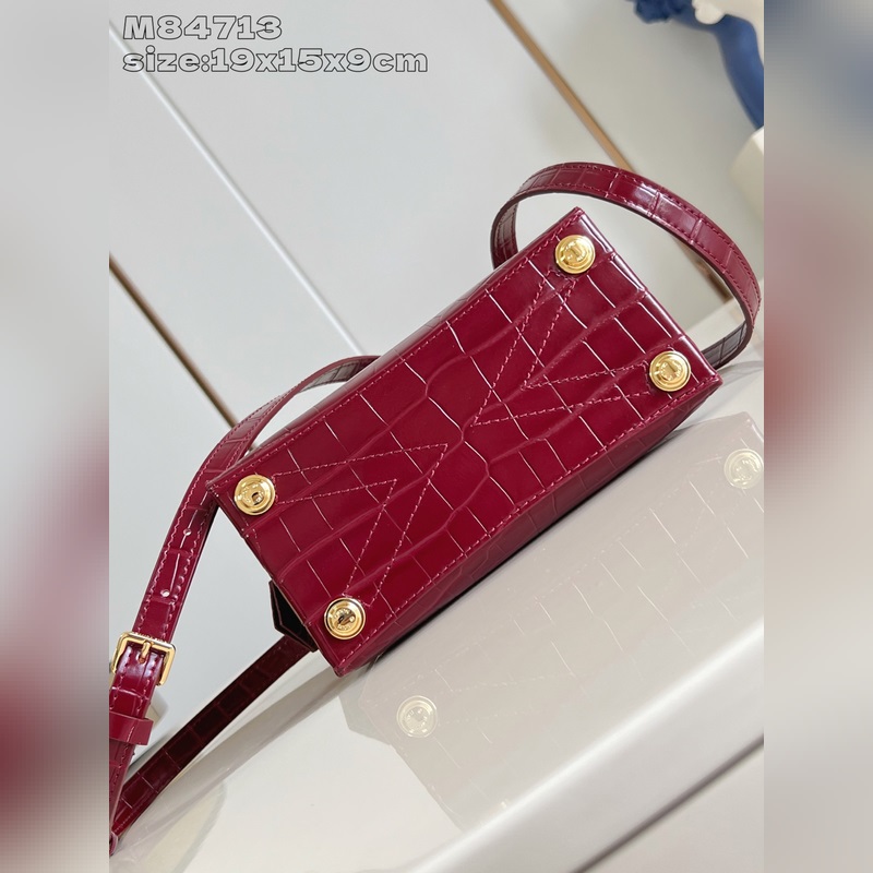 [독점 실사 M84713 와인 레드 광택 악어 무늬 골드 코어/미니 ] 로즈 데 방 미니 핸드백은 매끄러운 소가죽과 그레인 소가죽으로 우아한 실루엣을 연출하며 골드 LV 자물쇠가 반짝이는 광채를 더합니다. 상단 핸들과 탈부착 및 길이 조절이 가능한 숄더 스트랩을 활용해 일상에서 우아한 엘보우 백이나 실용적인 크로스백 등 다양한 스타일을 연출할 수 있습니다. 사이즈: 19 x 15 x 9cm