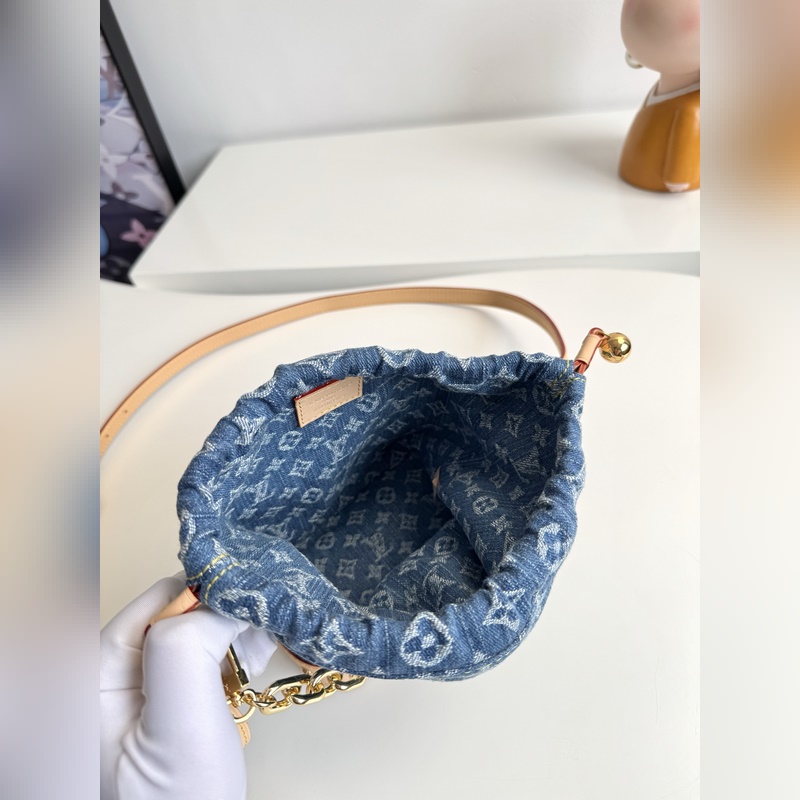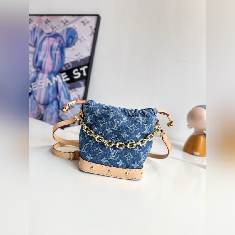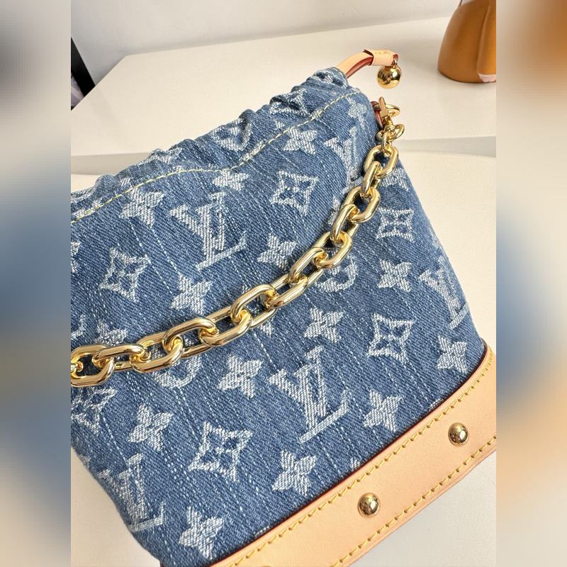163c 동적 칩 l FR 해외 원단 M83043 독점 실사! 본 제품 나노 노에 백팩은 면 소재에 트렌디한 데님 톤을 입히고 클래식한 모노그램 패턴을 더해 가죽 트림과 화려한 체인 디테일과 조화를 이룹니다. 드로우스트링 여밈 부분의 LV 로고 장식은 유머러스한 감각을 선사하며 동시에 브랜드의 오랜 전통을 상징합니다. 사이즈: 20.5 x 17.5 x 8.8cm