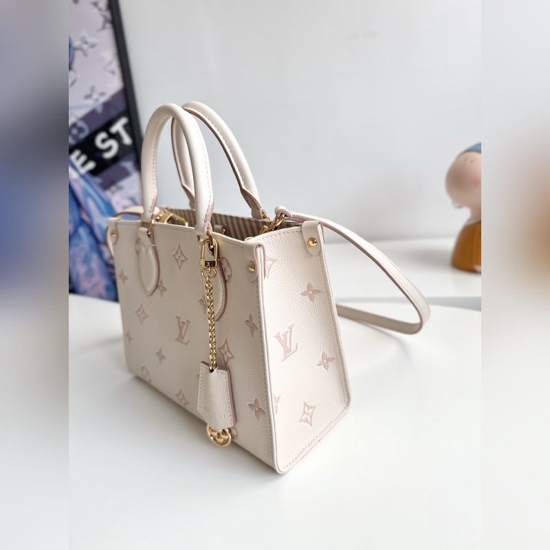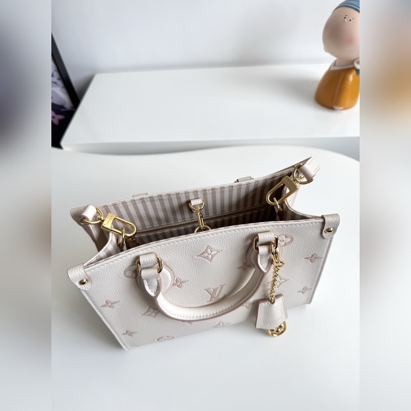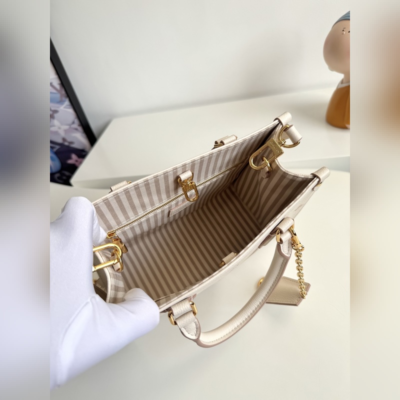 163c 동적 칩 FR 해외 원단 M14403 독점 실사! 본 제품 OnTheGo 소형 핸드백은 브랜드 클래식 모노그램 엠프린트 가죽을 새롭게 선보이며 동일한 톤으로 패턴 윤곽을 강조합니다. 탈부착 가능한 메탈 체인 장식이 디테일을 돋보이게 하며 스트라이프 직물 안감은 우아한 분위기를 자아냅니다. 탈부착 가능한 숄더 스트랩으로 어깨에 메거나 크로스백으로 활용 가능합니다. 사이즈: 25 x 19 x 11.5cm