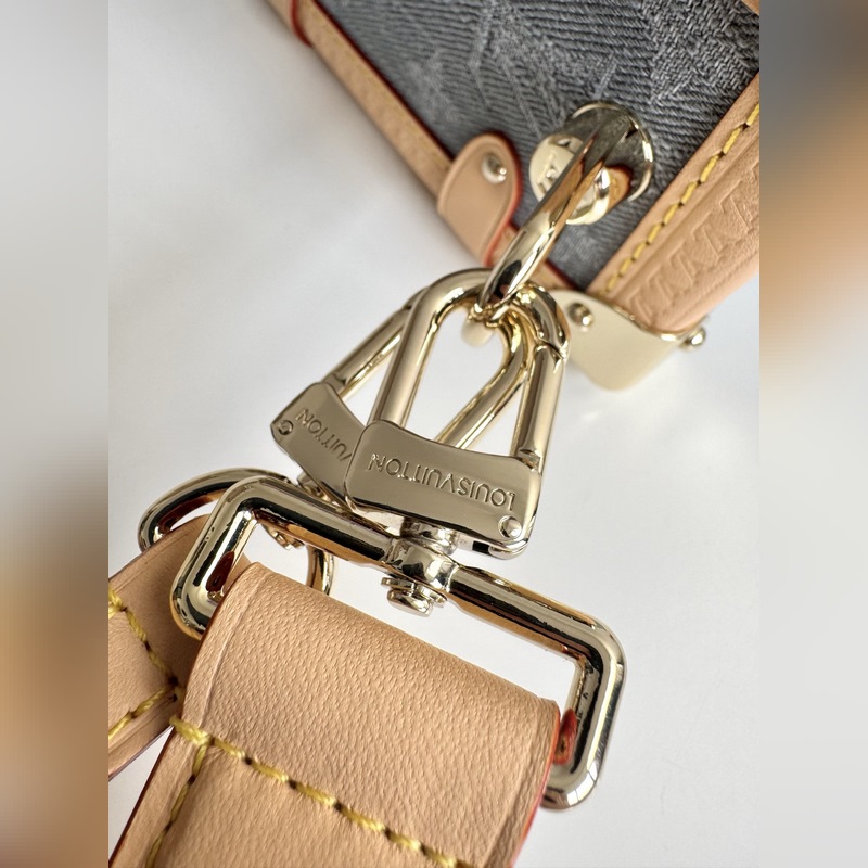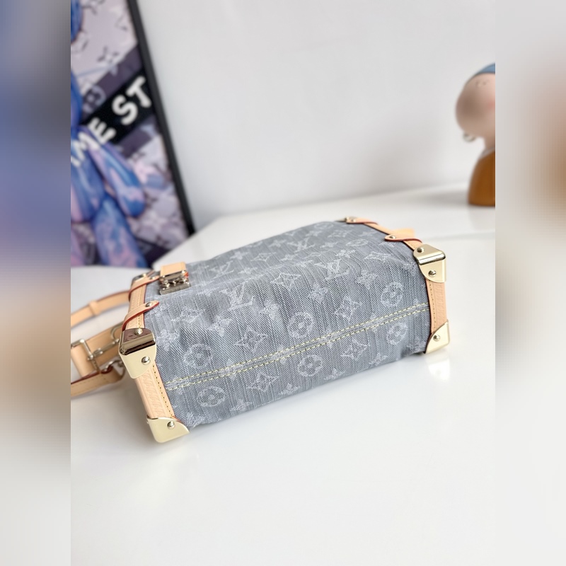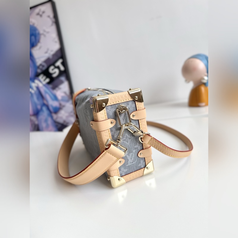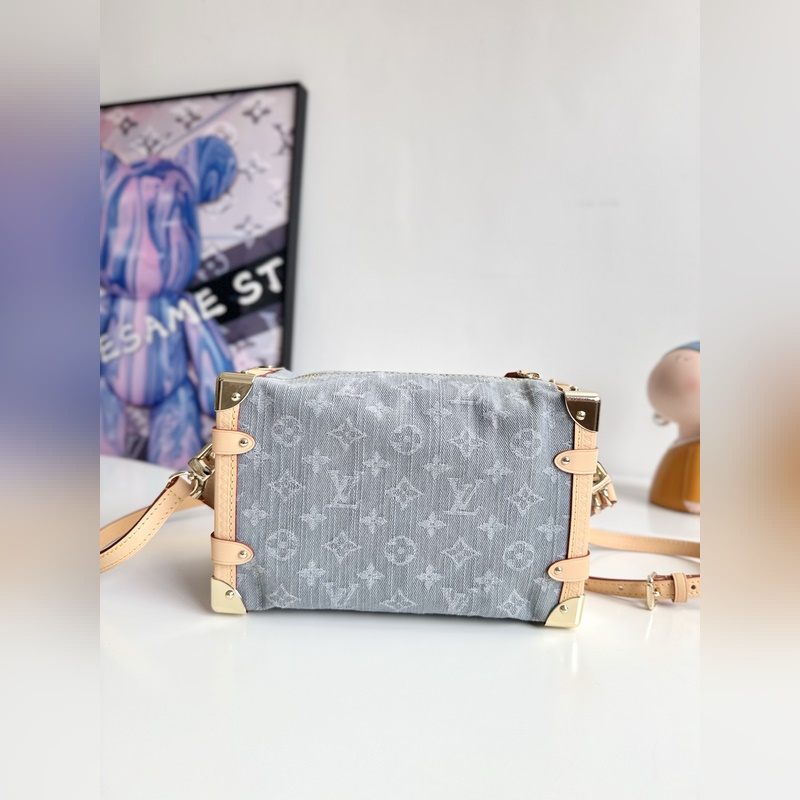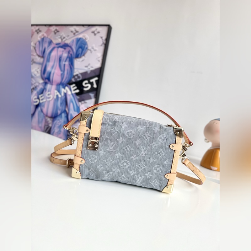 163c 동적 칩 FR 해외 원단 M13285 독점 실사! 본 사이드 트렁크 미디움 핸드백은 독특한 표백 효과로 2005년 탄생한 모노그램 데님 패턴을 재해석하여 루이 비통 클래식 트렁크 디자인을 정교하게 재현했습니다. 반짝이는 메탈 디테일 하드 케이스 스타일의 모서리 보호대와 S-lock 잠금장치가 유려한 실루엣을 강조하며 가죽 트리밍이 시각적 대비를 더합니다. 넉넉한 수납 공간으로 일상 소지품을 편리하게 보관할 수 있습니다. 사이즈: 23.5 x 16 x 8.5cm