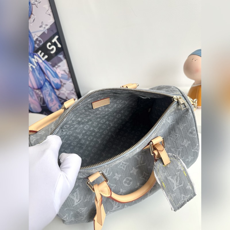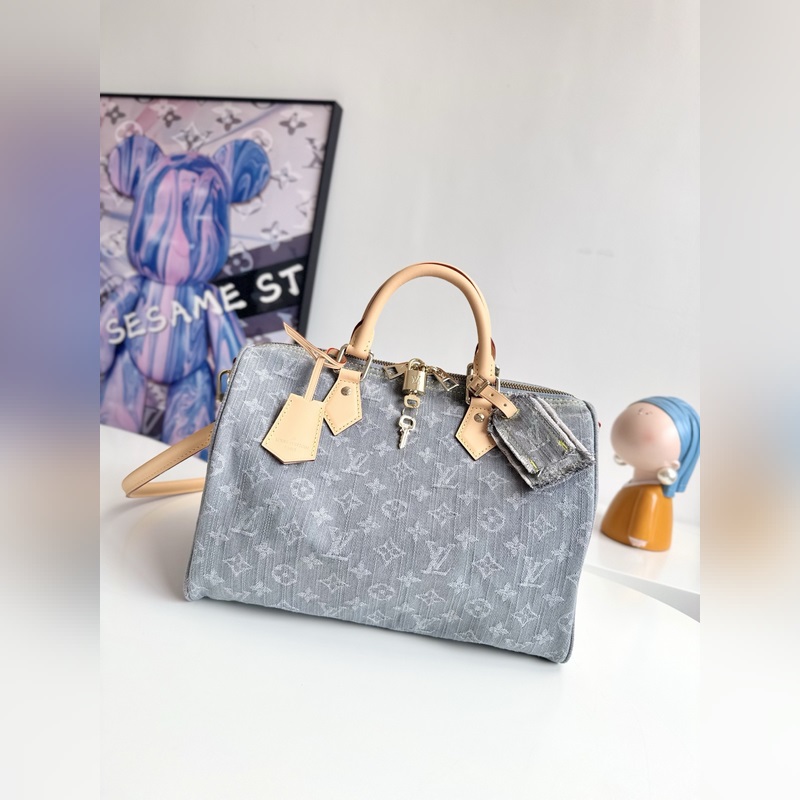 163c 동적 칩 FR 해외 원단 M13344 독점 실물 촬영! 본 Speedy Soft 30 핸드백은 루이 비통의 정교한 표백 공정을 바탕으로 면직물 표면에 2005년 탄생한 모노그램 데님 패턴을 재현했으며 가죽 트림과 반짝이는 금속 디테일로 포인트를 더했습니다. 키 케이스와 탈부착 가능한 명판은 브랜드의 가방 제작 전통을 기리며 탈부착 가능한 토론 핸들은 편안한 어깨 착용감을 선사합니다. 사이즈: 30 x 21 x 17cm