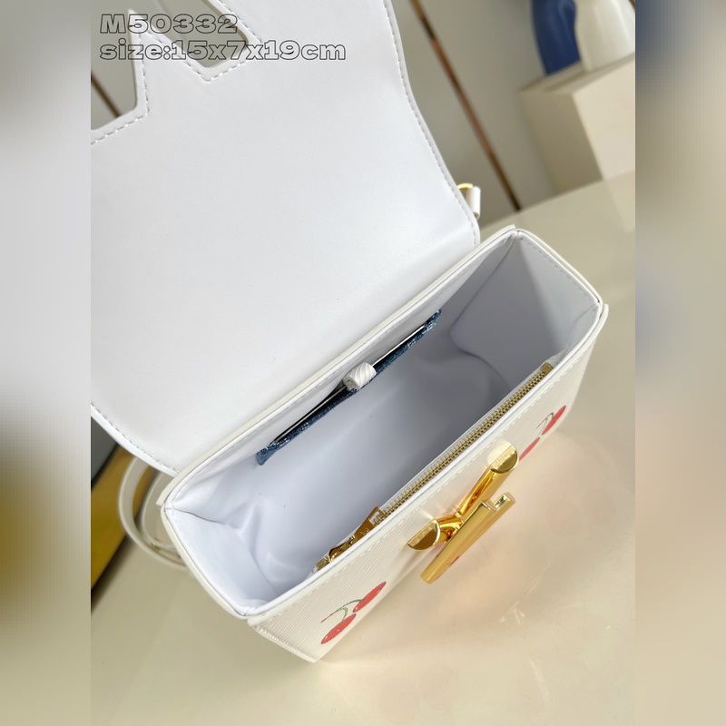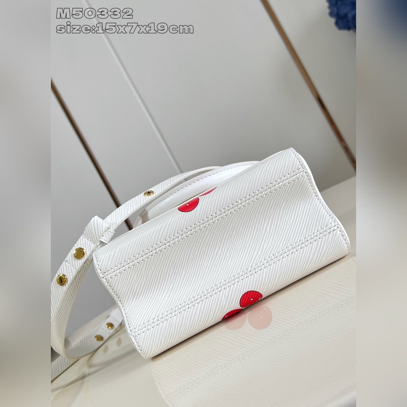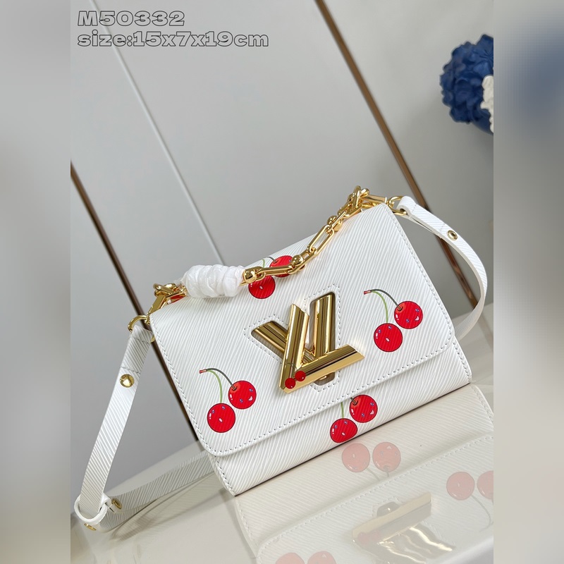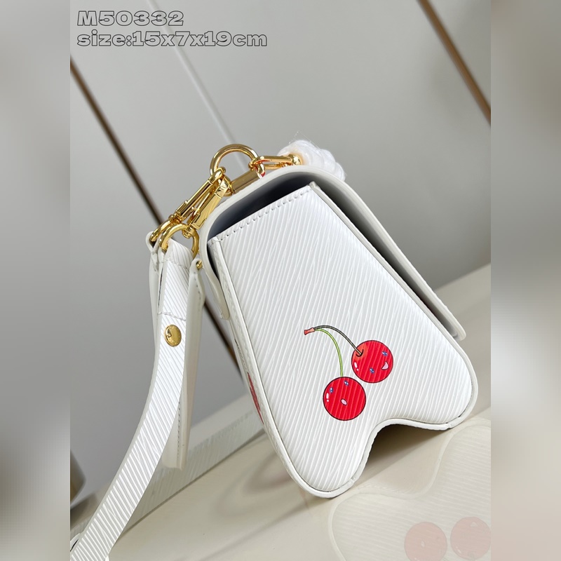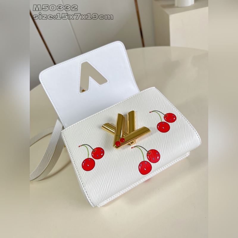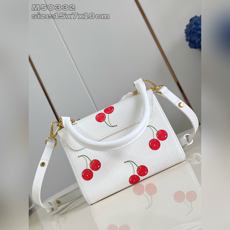 [독점 실사 M550 332 체리 ] M13239 본 제품 트위스트 소형 핸드백은 루이 비통 x 무라카미 타카시 리메이크 시리즈로 브랜드 에피 그레인 소가죽의 섬세한 질감이 생동감 넘치는 체리 패턴과 조화를 이루며 일본 예술가의 상징적인 경쾌한 붓질을 드러냅니다. 눈부신 금속 부품은 광택 있는 색조를 띠며 LV 트위스트 잠금장치는 클래식한 스타일을 이어갑니다. 15 x 7 x 19 cm (높이 x 너비 x 길이)