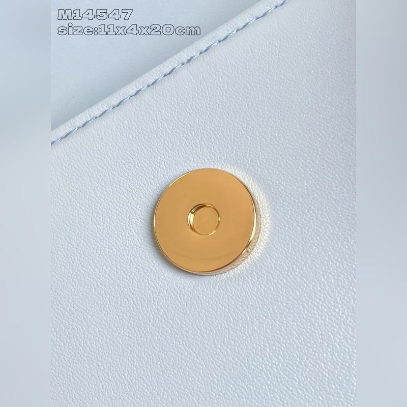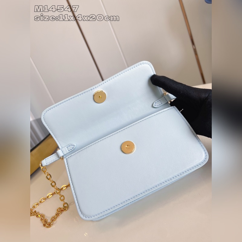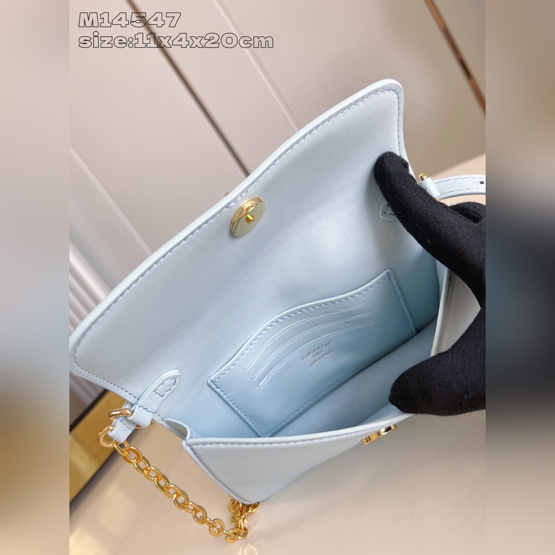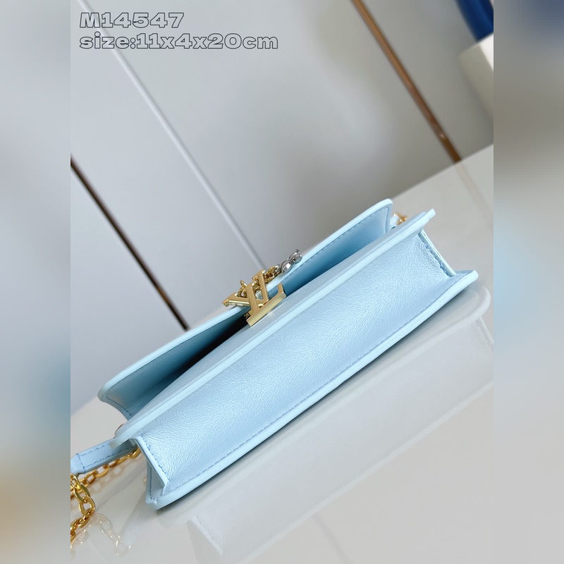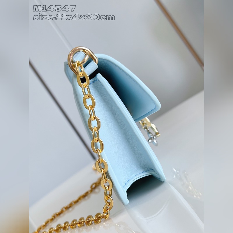 원단 [M14547 블루 ] 이 Wallet On Chain 핸드백은 루이 비통 LV Bloom 시리즈의 제품으로 소가죽으로 세련되고 실용적인 실루엣을 구현했습니다. 브랜드의 클래식한 모노그램 패턴에서 영감을 받은 장식이 포인트로 더해졌습니다. 스마트폰을 수납할 수 있는 넉넉한 공간과 대비되는 컬러의 금속 디테일이 우아한 매력을 더합니다. 11.5 x 4 x 20 cm (높이 x 너비 x 길이)