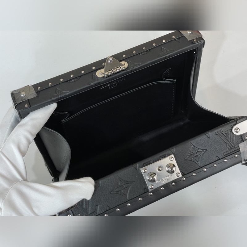 탑급 원단 복제품 독점 실물 촬영 [CLUTCH BOX 하드 케이스 핸드백] M12876 블랙/스트라이프 엠보싱 (니트) Clutch Box 핸드백은 Monogram Shadow 압인 가죽으로 루이 비통의 가방 제작 전통을 기리며 탈부착 및 길이 조절이 가능한 직물 숄더 스트랩으로 어깨에 메거나 크로스백으로 자유롭게 활용 가능합니다. 가죽 트림 금속 리벳 S-lock 잠금장치가 모던한 감각을 전달하며 내부에는 아코디언 스타일 수납공간과 포켓이 마련되어 있습니다. 사이즈: 24 x 16.5 x 8 cm