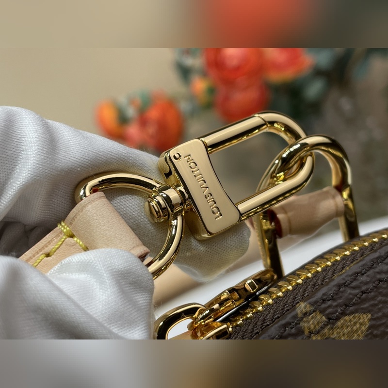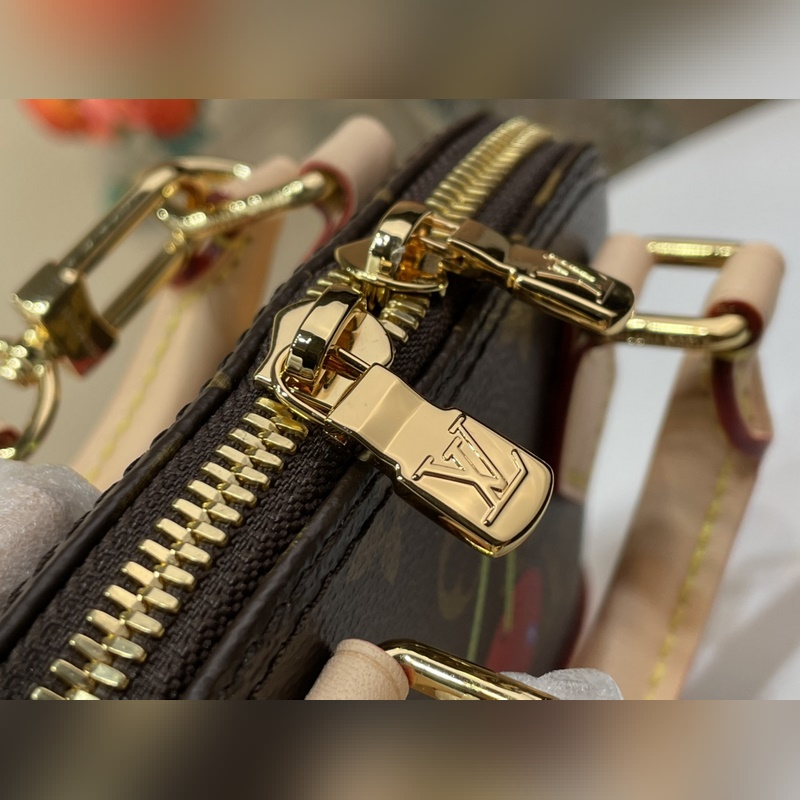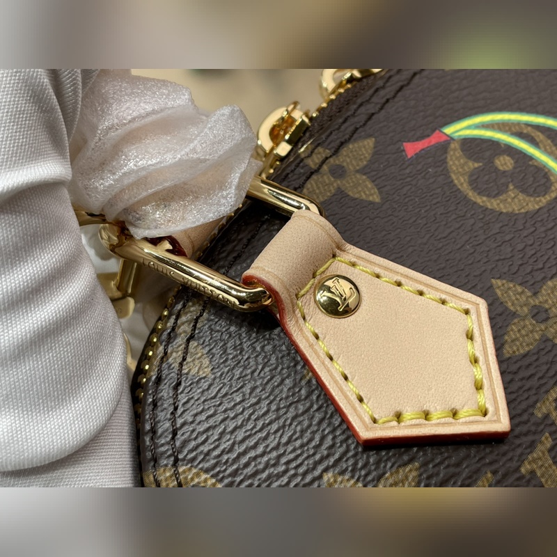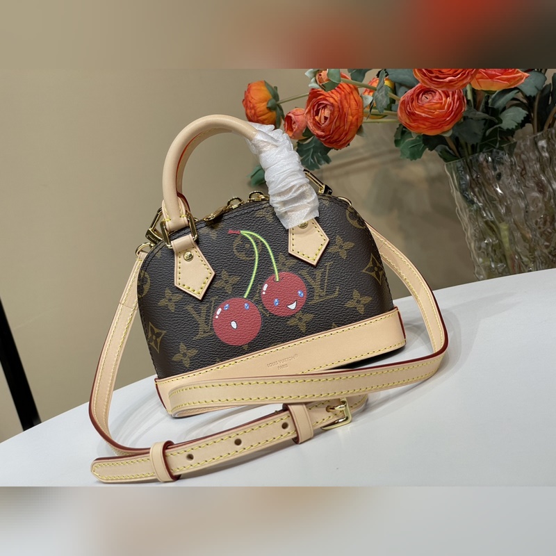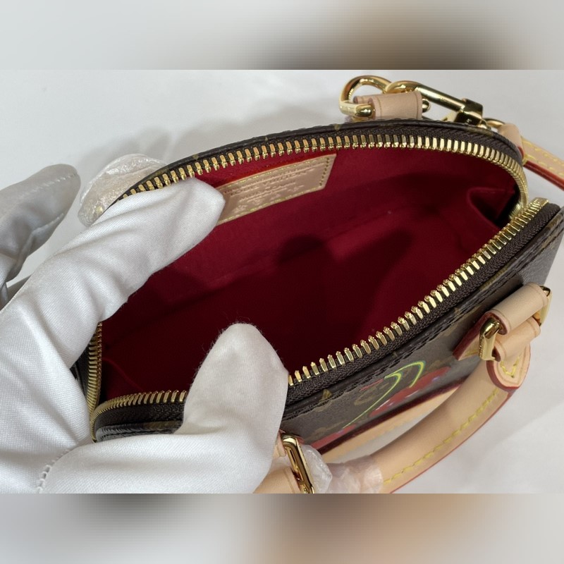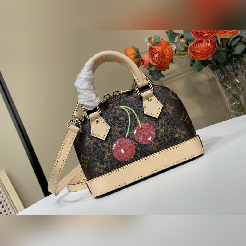 탑급 원단 복제품 독점 실물 촬영 [LV x TM Nano Alma ] m13416 올드 플라워/체리 나노 알마는 주얼리 비율로 디자인되었으며 루이 비통 x 무라카미 시리즈 2탄의 기발한 체리 패턴으로 장난기 넘치는 매력을 더했습니다. 모노그램 코팅 캔버스로 클래식한 하우스 코드를 투영하며 상단 핸들과 탈부착 가능한 조절 스트랩을 포함한 천연 소가죽 장식으로 다양한 휴대 옵션을 제공합니다. 내부에는 소형 지갑과 대형 스마트폰을 포함한 일상 필수품을 수납할 수 있습니다. 사이즈: 18 x 12 x 8cm