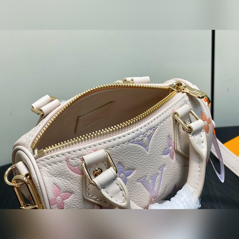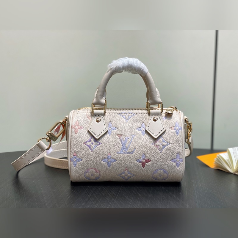 M25591 미백 그라데이션 풀 가죽 스피디 베개백 이번 시즌 나노 스피디 핸드백은 은은한 환상적인 색상으로 물들어 다양한 스타일을 쉽게 완성해 줍니다. 클래식한 모노그램 엠프린트 가죽 바디에 메탈 디테일이 조화를 이루며 넉넉한 내부 공간으로 소형 지갑 등 일상 소지품을 수납할 수 있습니다. 탈부착 가능한 숄더 스트랩으로 다양한 스타일링이 가능합니다. 10 x 7.5 x 16 cm(높이 x 너비 x 길이)