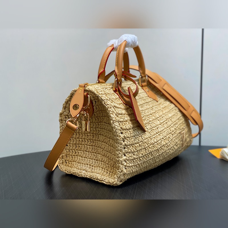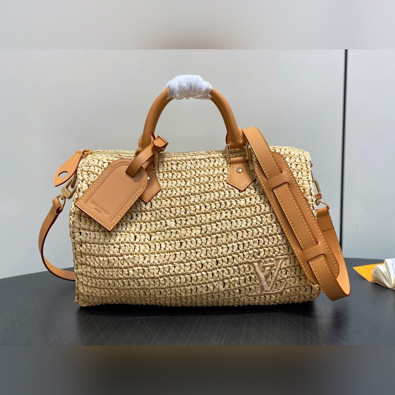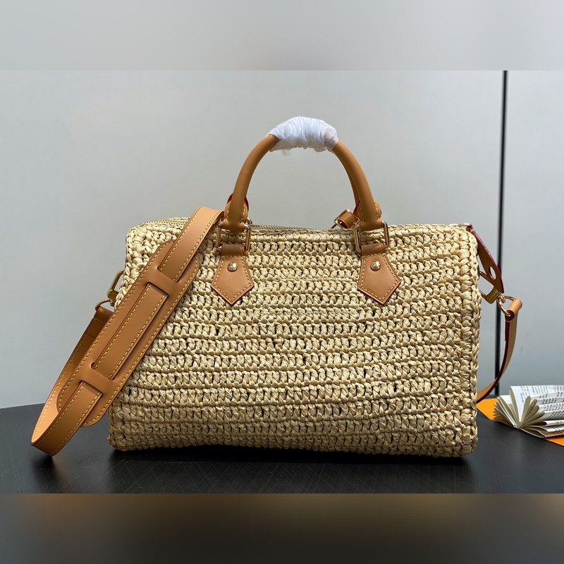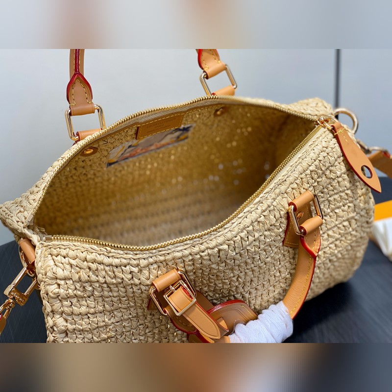 M14457 앵두색 라피초 짠 스피디 베개백 시즌 신상 스피디 30 반도리에르 핸드백 본 스피디 30 반도리에르 핸드백은 라피초 소재를 사용해 정교한 장인 정신으로 각 제품에 독특한 매력을 더했으며 빈티지 처리된 소가죽으로 복고적인 감성을 더했습니다. LV 이니셜 자수가 전면 한쪽에 자리잡고 있으며 상단 핸들과 탈부착 및 길이 조절이 가능한 숄더 스트랩으로 다양한 방식으로 휴대할 수 있습니다. 22 x 19 x 34 cm