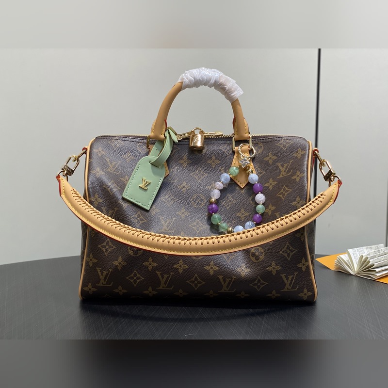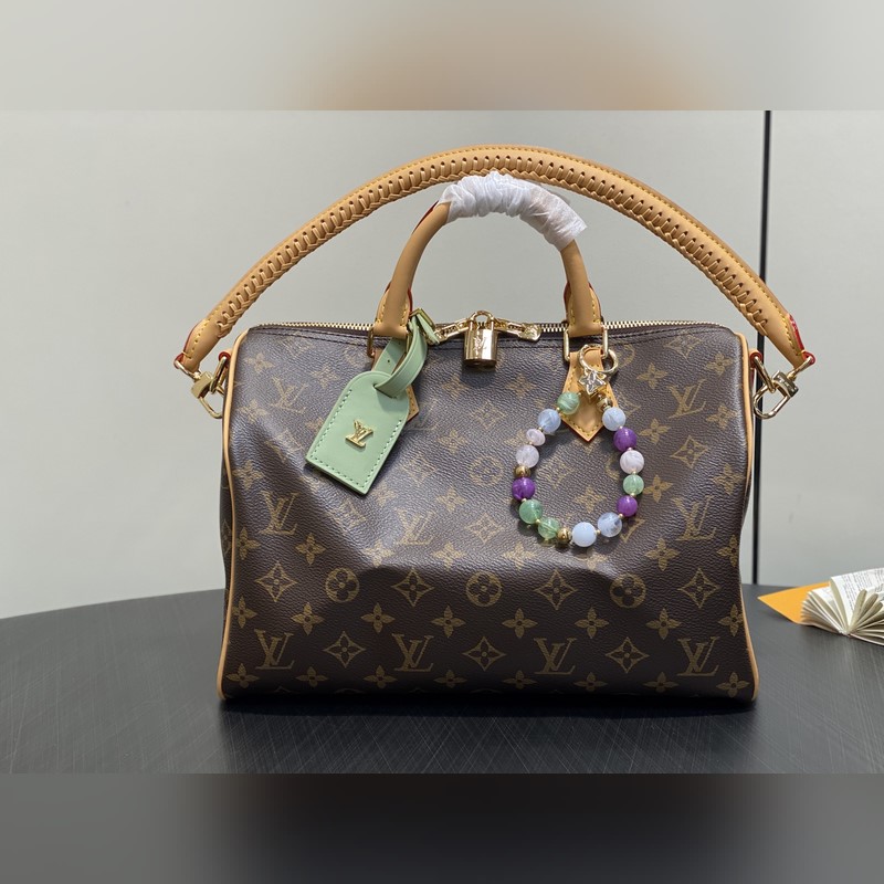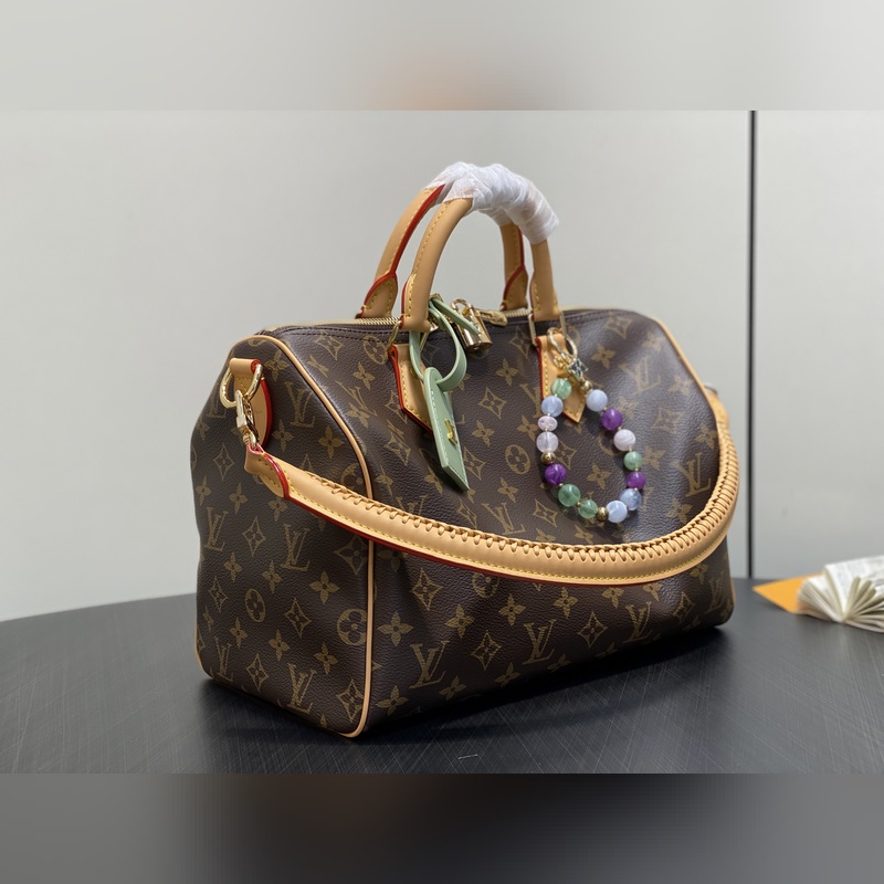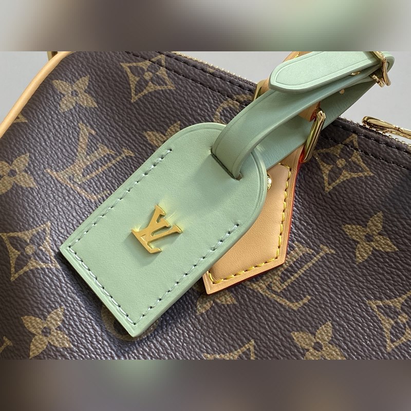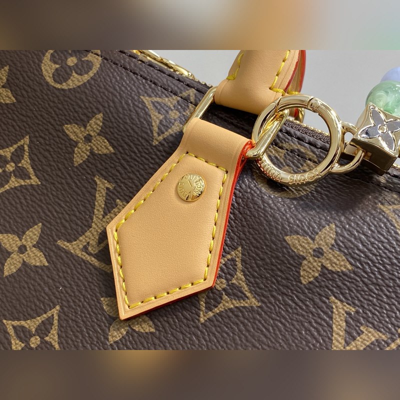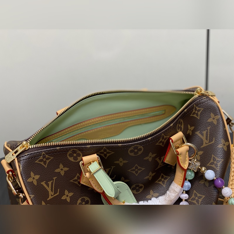 M15107 올드 그린 스피디 베개 백 시즌 신상 스피디 소프트 30 럭키 핸드백 본 스피디 소프트 30 럭키 핸드백은 모노그램 캔버스에 VVN 가죽 트림을 더하고 보석 같은 탈부착 가능한 장식 대비되는 컬러의 안감 메탈 디테일로 세련된 디테일을 강조합니다. 넉넉한 실루엣으로 태블릿과 일상 필수품을 수납하기에 충분합니다. 21 x 17 x 30 cm